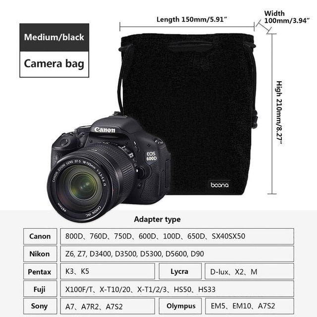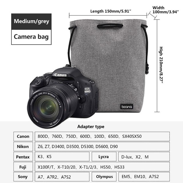 DSLR Camera Bag Lens Case Lens Drawstring Pouch Camera Pouch Lens Bag Photo Photographic Bag For Camera Cosmetic Storage Electronic Gadgets