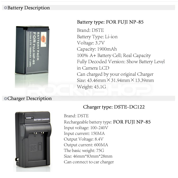 DSTE NP-85 NP85 Replacement Battery or Charger DC122 For Fujifilm SL300 SL305 SL245 SL240 SL280