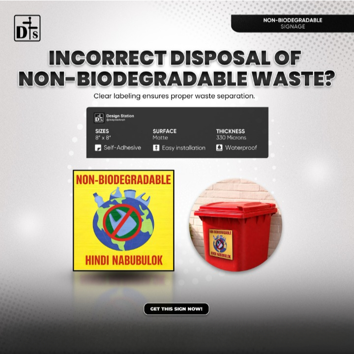DSign Proper Waste Disposal Signage Vinyl Sticker 8 x 8" Inches, Sign sticker, Waterproof Stickers.