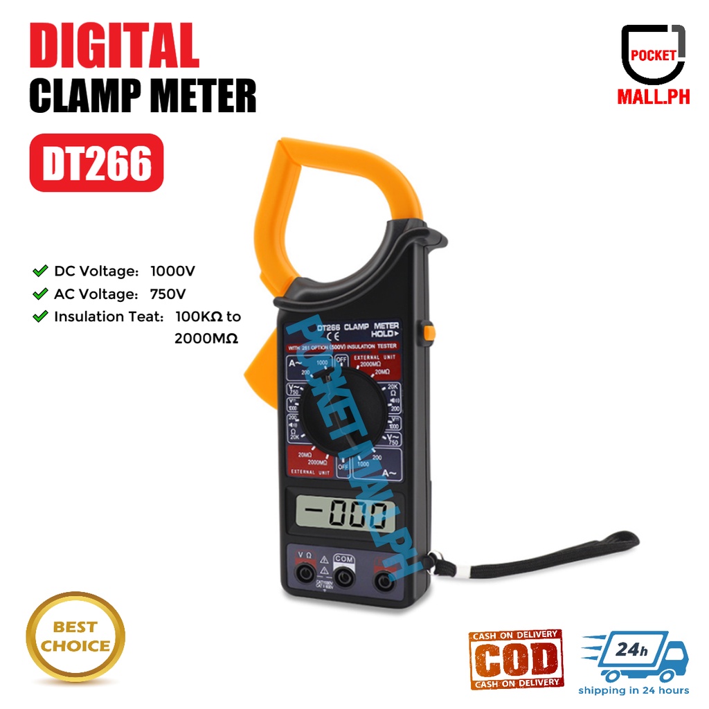 DT266 Electronic Digital Clamp Meter Multimeter AC DC Current Volt Hold Tester COD