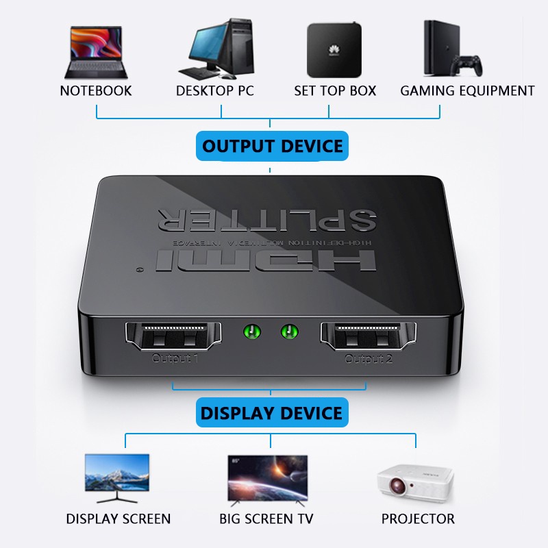 DTECH HDMI Splitter One Point Two In Out 4K Hd Split Screen Device Laptop Tv Box Projector 1 2 Same