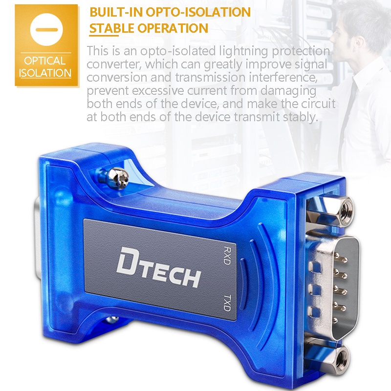 DTECH Passive RS232 To RS485 Converter Industrial Grade Optoelectronic Isolation Lightning Protection Surge Swift Serial Protocol Module DT-9015