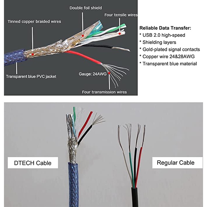DTECH Shielded USB Printer Cable 2.0a Male To B Port Data Transmission Square (Dark Blue)