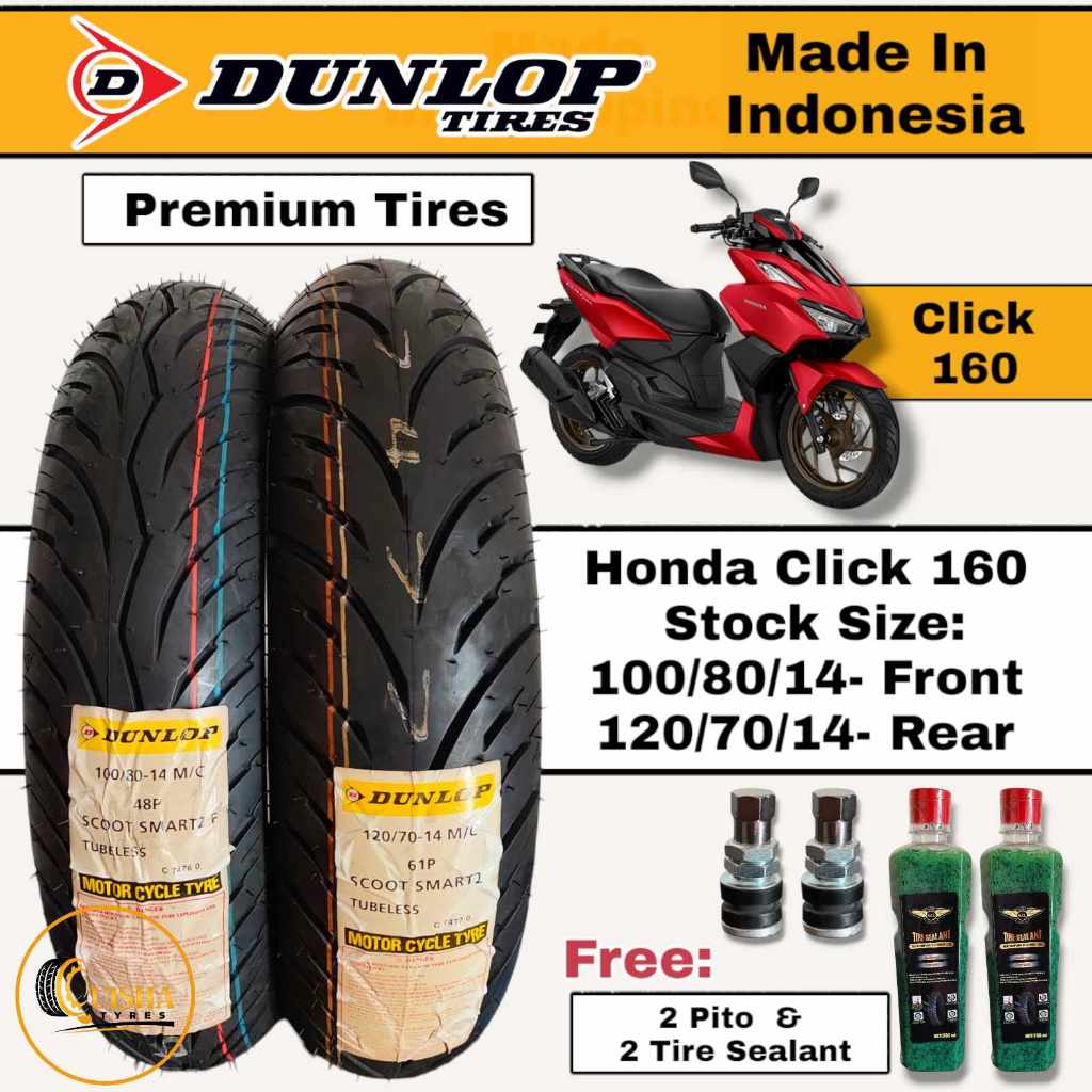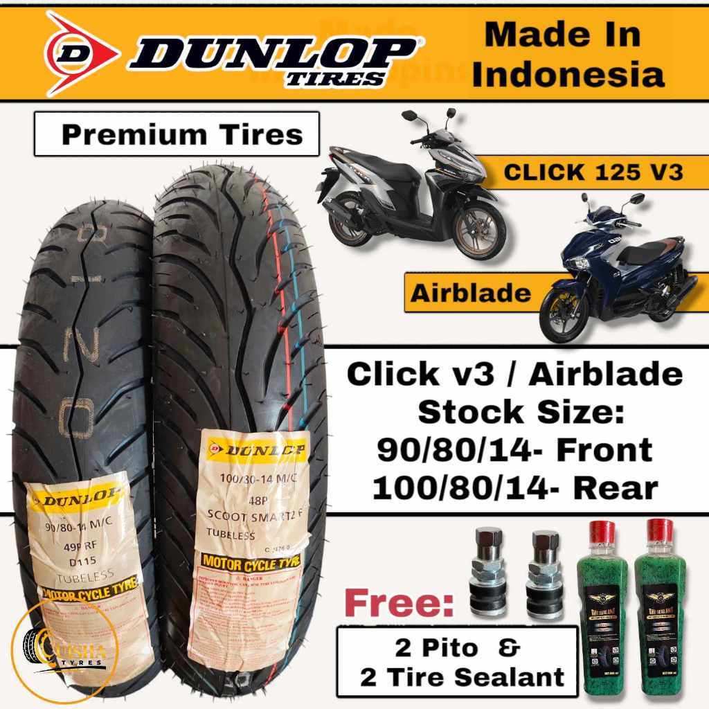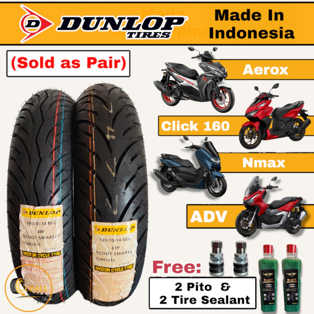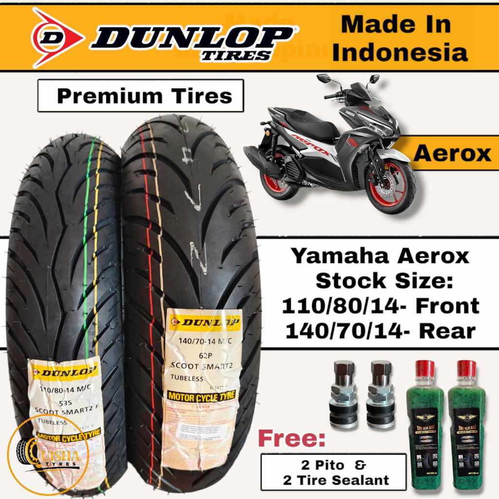 DUNLOP TIRE SIZE 13 & 14 TUBELESS FOR CLICK, AEROX, ADV, NMAX, MIO I 125 (SOLD AS PAIR)