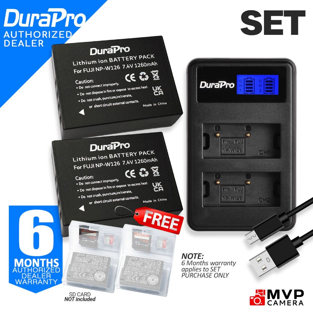 DURAPRO NP-W126 NP-W126S NPW126S 126 126S Battery Charger Fuji Fujifilm X100V XT1 XT2 XT3 XT20 XT30