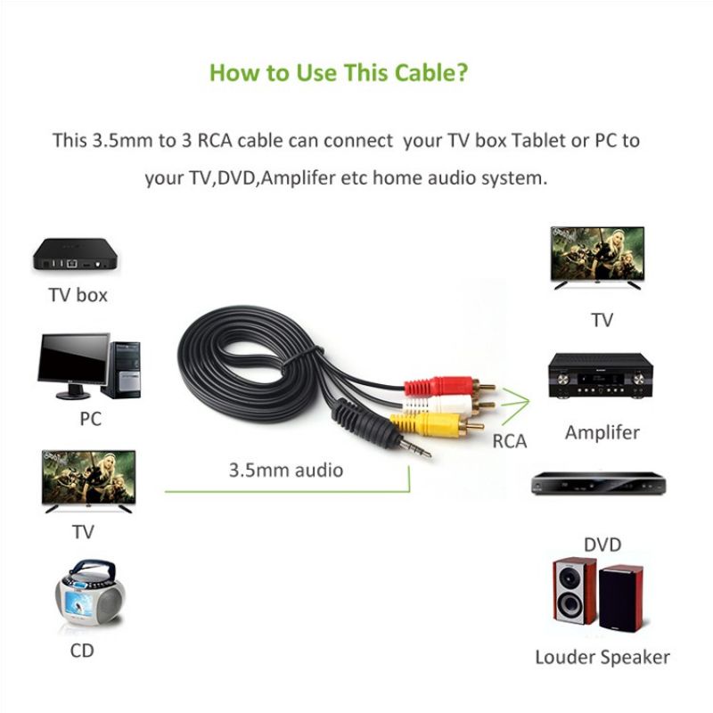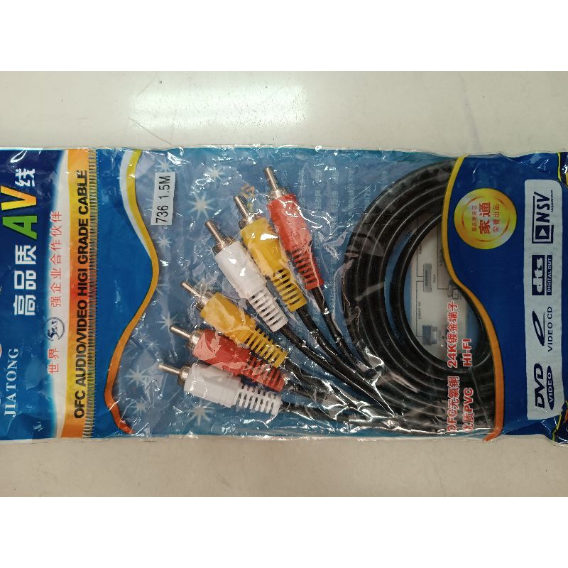 DVD Cable Jack 1.5m & 3m 3x3/RCa Jack TV to DVD aux Cable