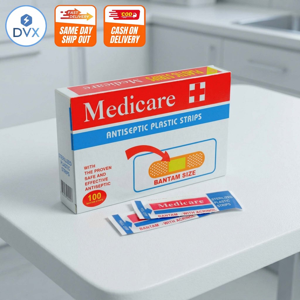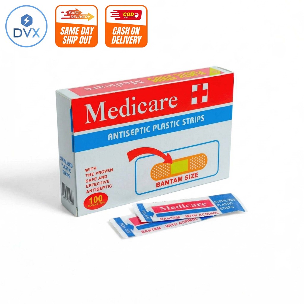 DVX Medicare Antiseptic Plastic Strips 100PCS Adhesive Bandages for Cuts Wounds and First Aid Use
