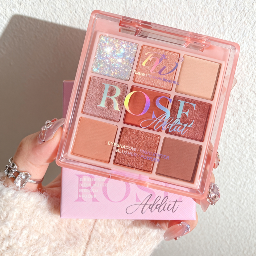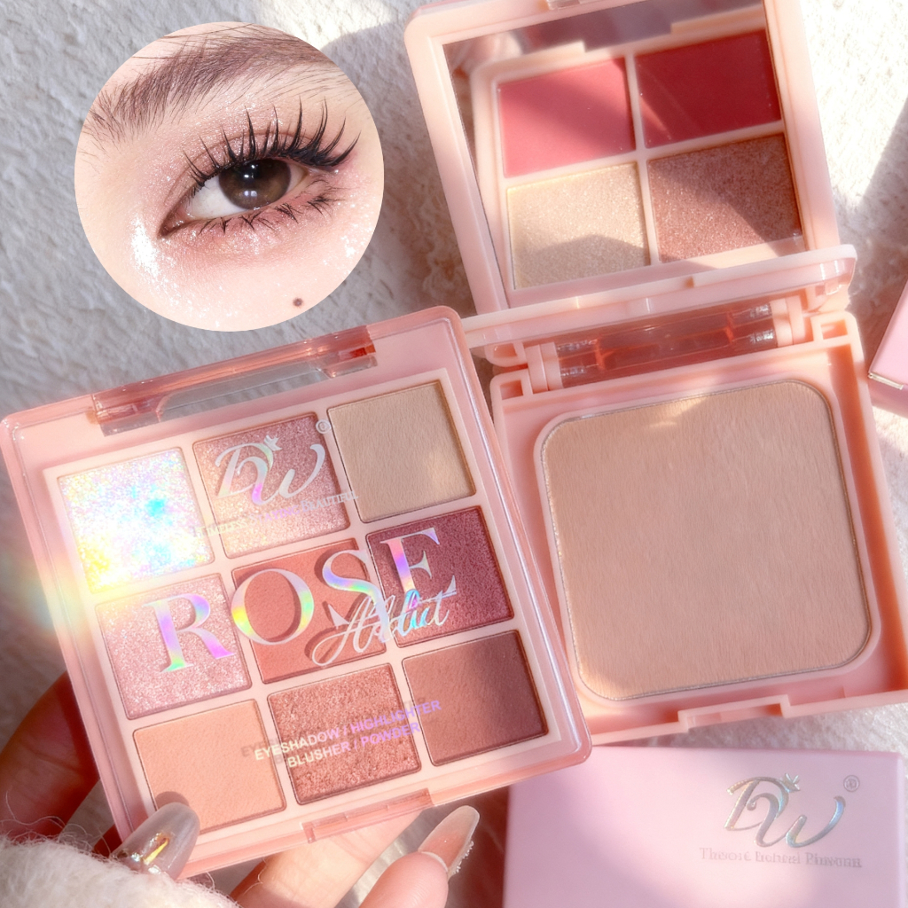 DW 3-layer All-in-one Makeup Palette [ Nude / Rose ] Eyeshadow Highlighter Blush Pressed Powder