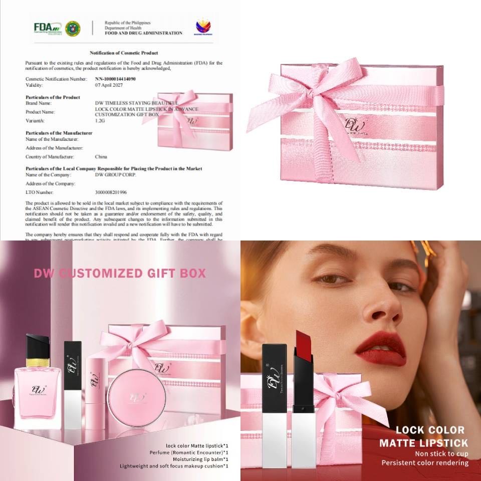 DW 4in1 Pink sweet makeup Suit Luxury gift box Cushion lipstick perfume lip balm 4in1 set