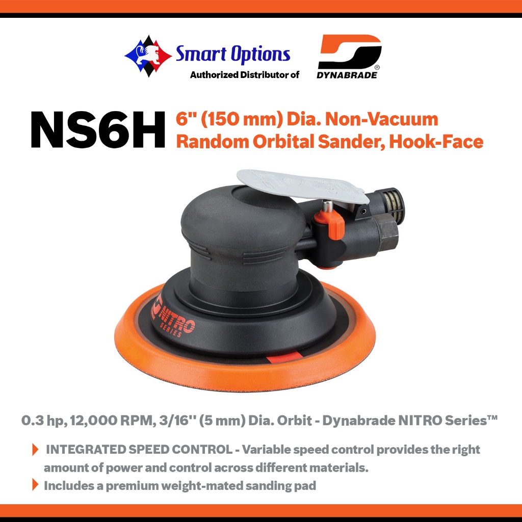 DYNABRADE NS6H NON-VACUUM NITRO SERIES RANDOM ORBITAL SANDER 6"
