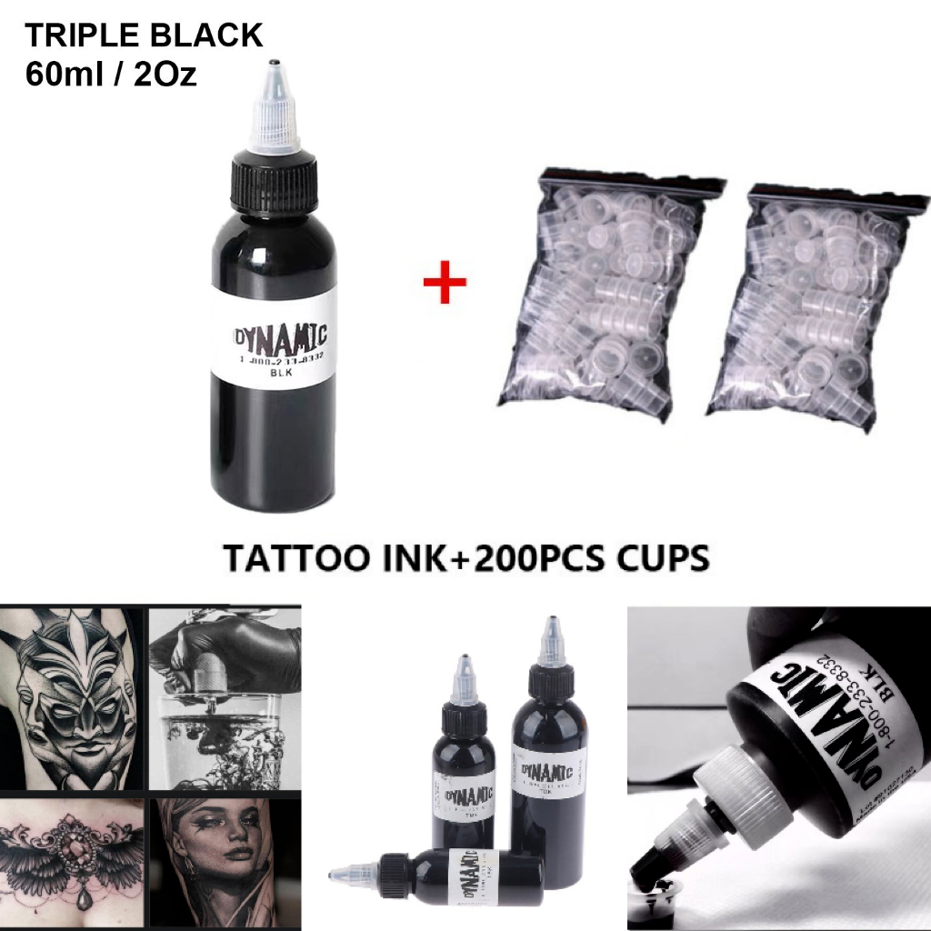 DYNAMIC Tattoo Ink Cups Set 60ml Tattoo Permanent Triple Black Ink With Ink Cups Tattoo Complete Kit
