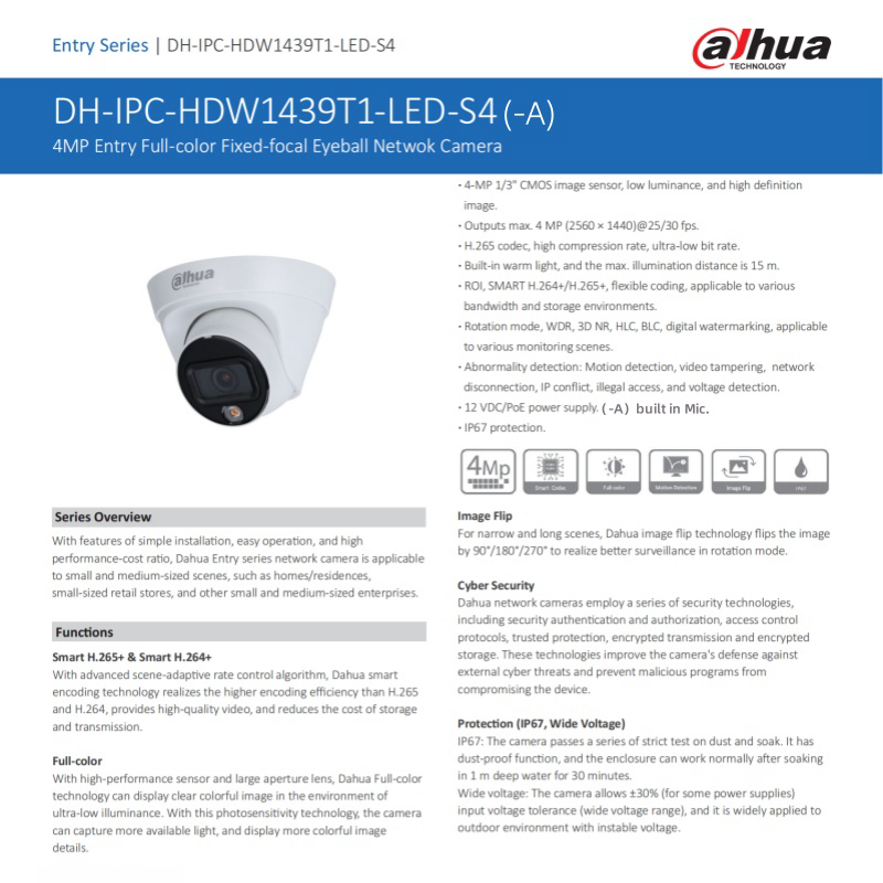 Dahua 2MP/4MP Full-color Fixed-focal Eyeball Netwok Camera with audio CCTV IP camera HD IP camera