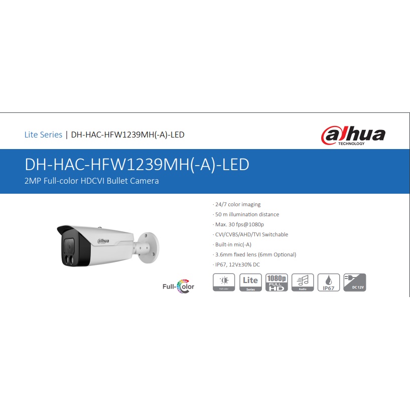 Dahua CCTV Camera 2MP HD Full-color Bullet With audio Outdoor Wired WDR Waterproof Analog Camera