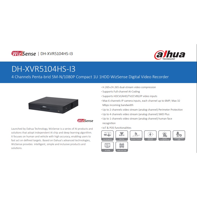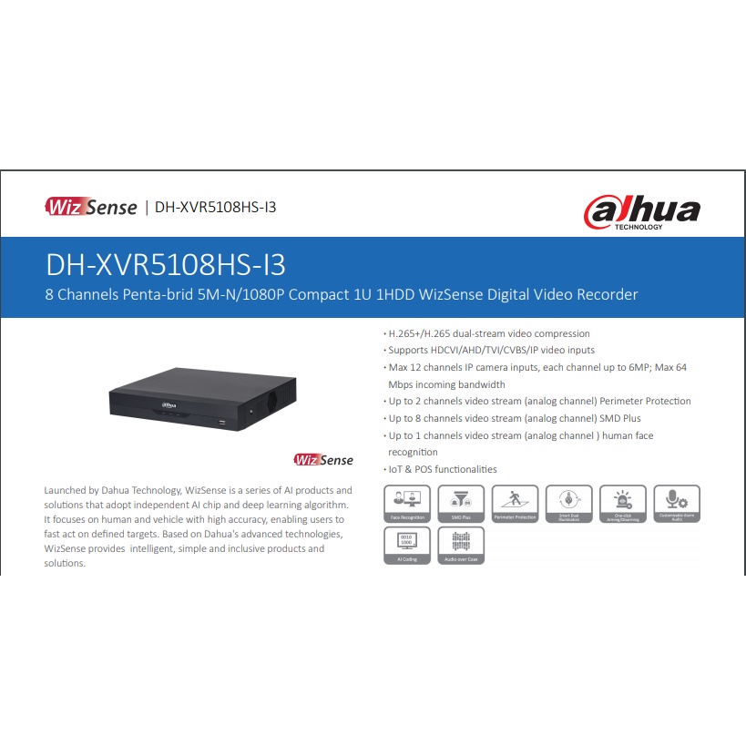Dahua CCTV DVR 4/8/16 CH Face Detection H.265 Motion Detect Video Recorder For CCTV Camera