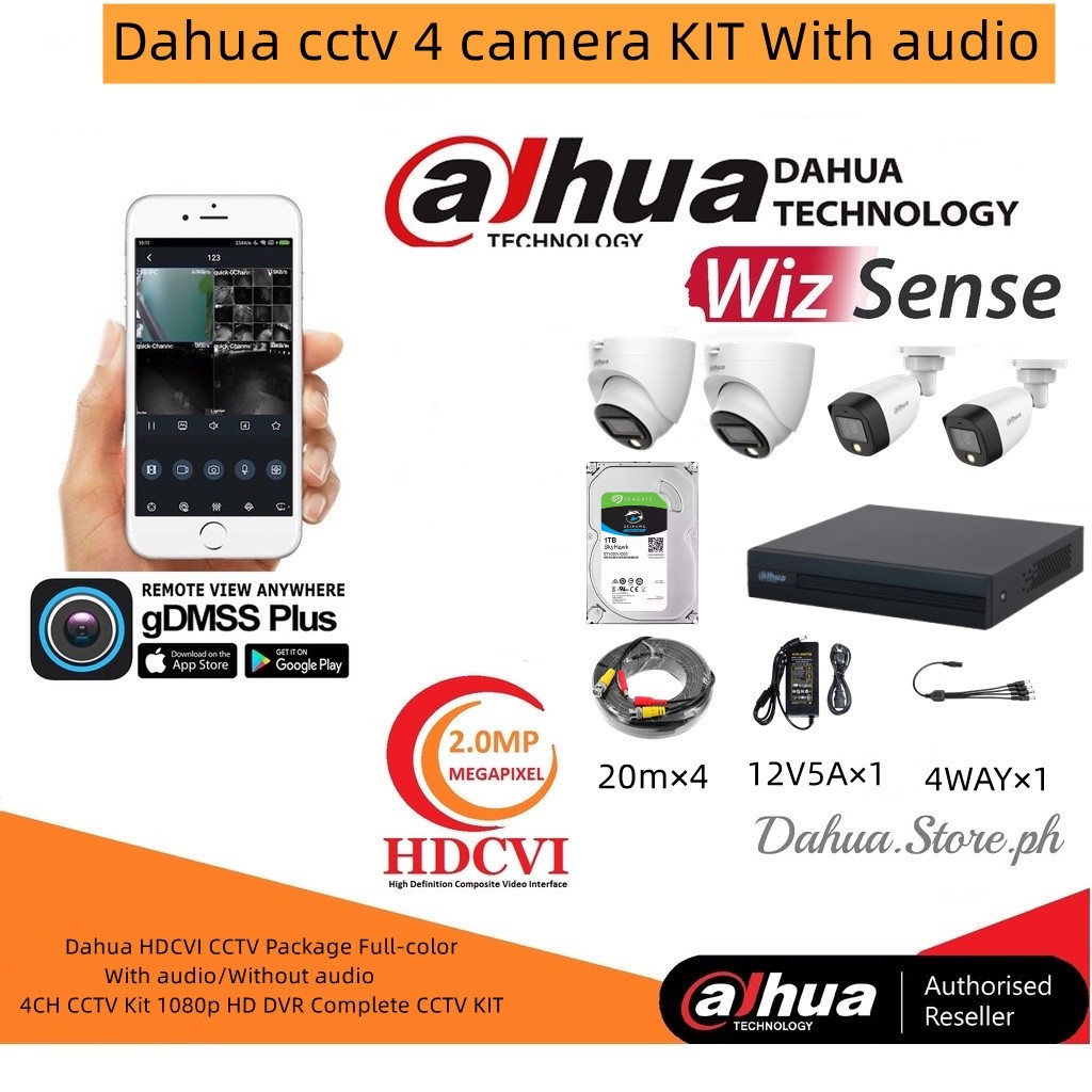 Dahua CCTV KIT Full-color With audio 2/4/8 CH CCTV Camera Kit 1080p HD DVR Complete CCTV Package