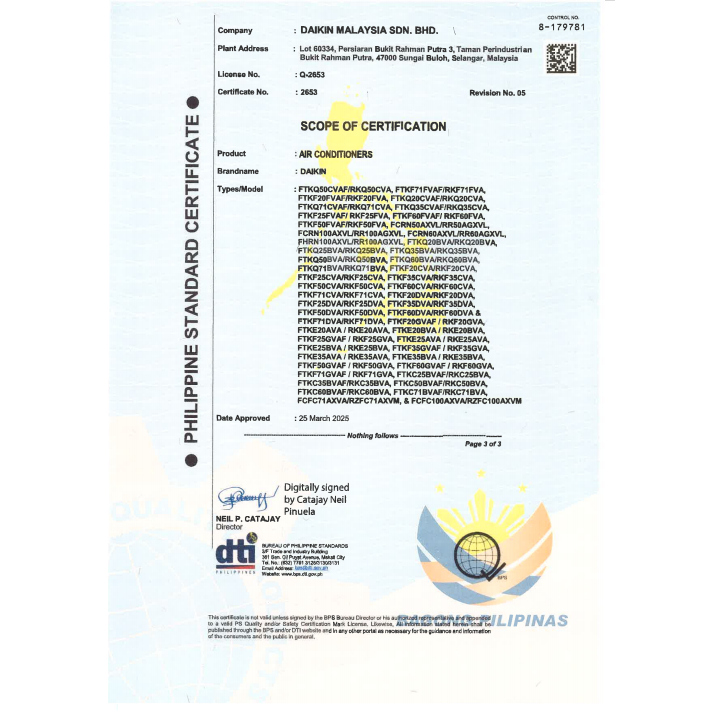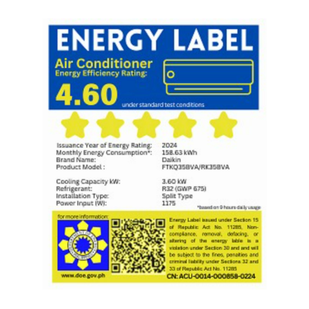 Daikin 1.5HP Wall Mounted Split Type D-Smart Series Inverter FTKQ35BVA
