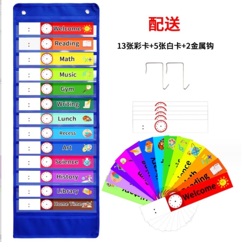 Daily Schedule Hanging Pocket Chart/Teaching Schedule Pocket Chart with Dry Erase Cards