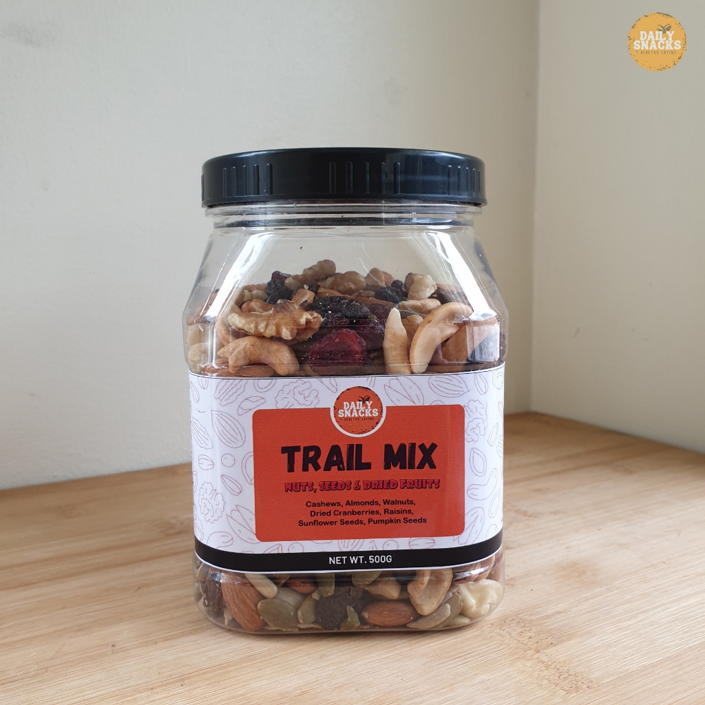 Daily Snacks Trail Mix Nuts, Seeds and Dried Fruits in Jar