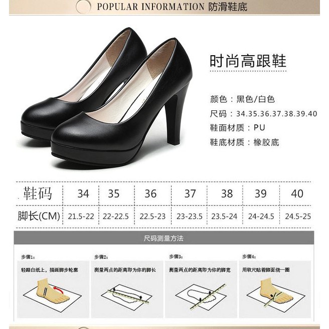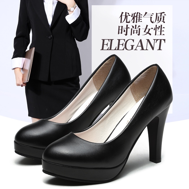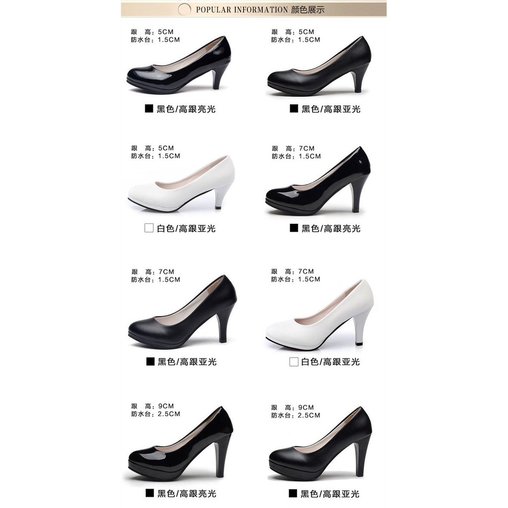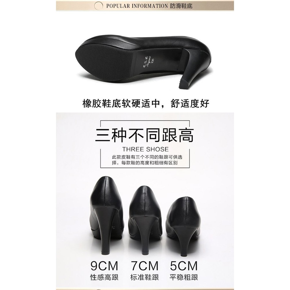 Daily Special Work Shoes Female Black Soft Leather High Heels Professional Interview White Thick