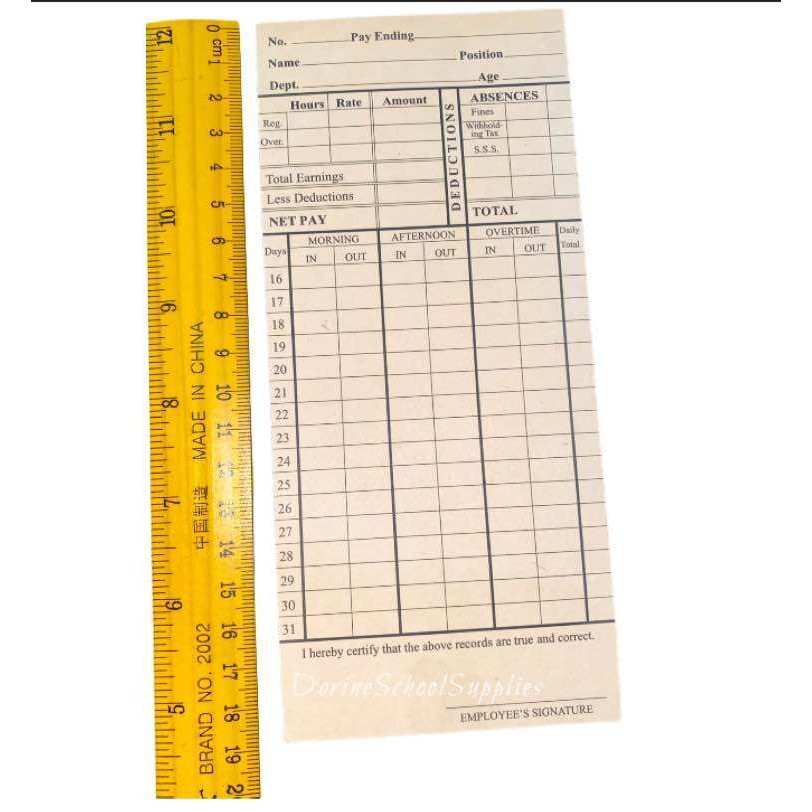 Daily Time Cards 10pcs. DTR Monthly 2-Sided Printed Clock In Log In Time Card Employee Time Card