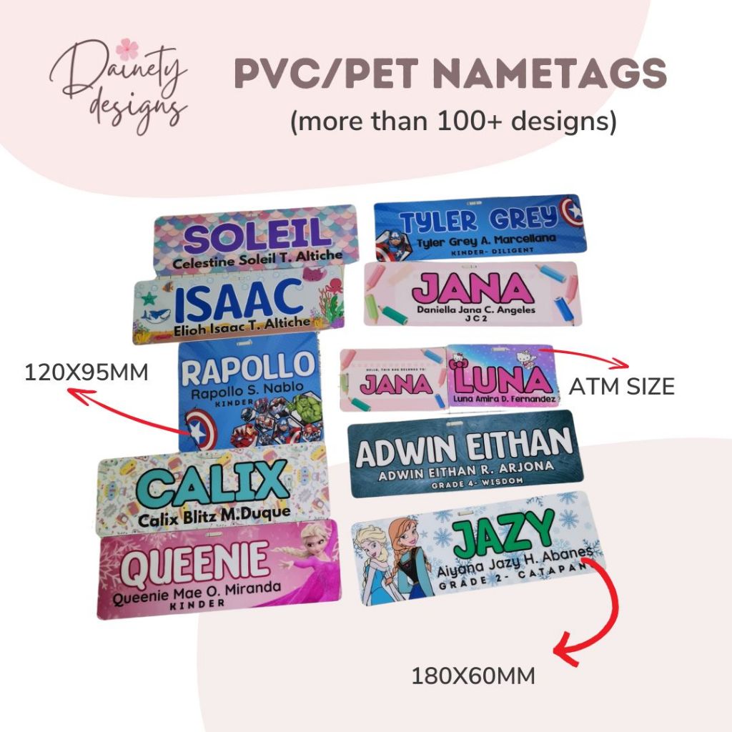 Dainety Designs- Customized PVC or LAMINATED Back to School Name Tag for kids BACK TO BACK PRINT