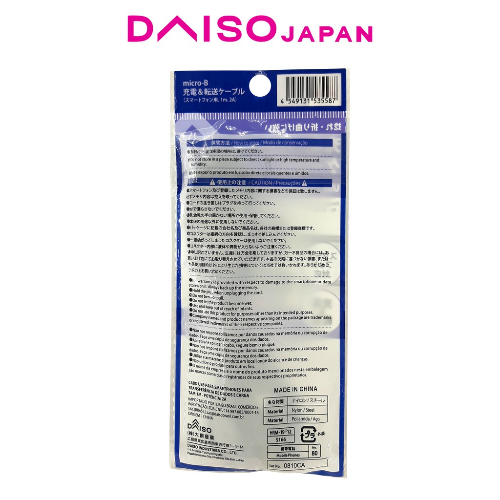 Daiso Gray USB-Micro B Charger & Transfer Cable (100cm)