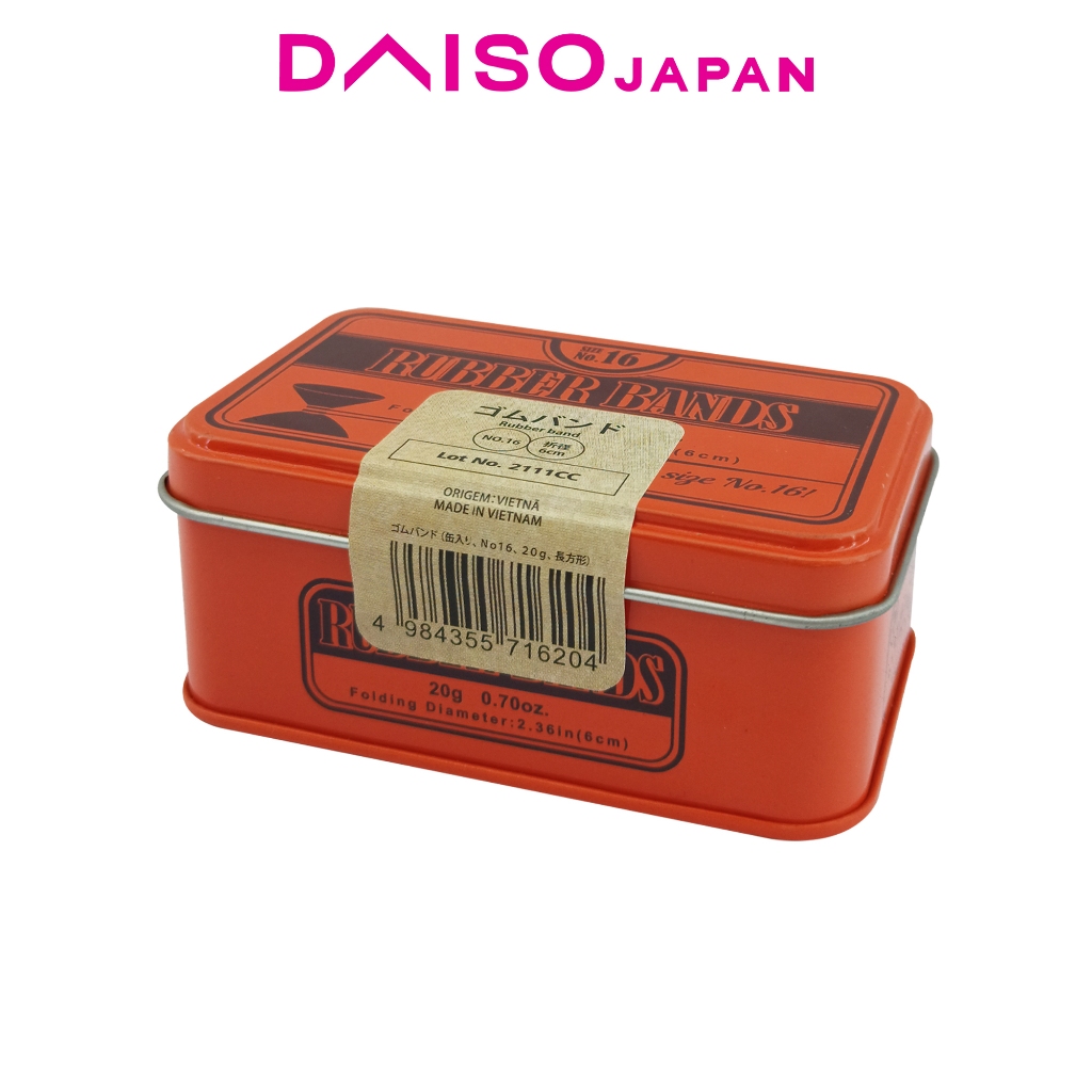 Daiso Size 16 Orange Rubber Bands (Rectangular Can)