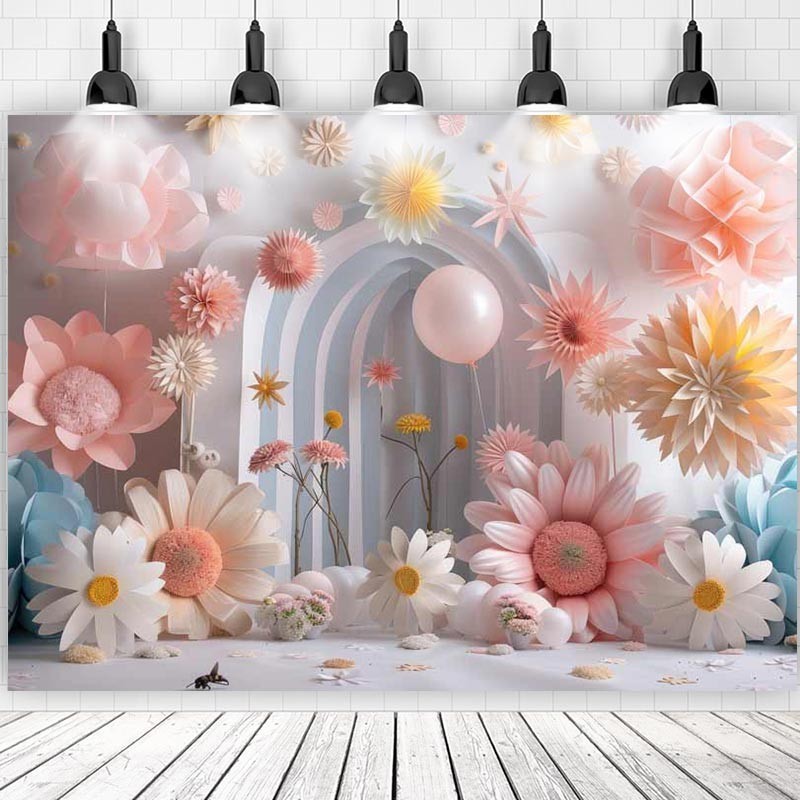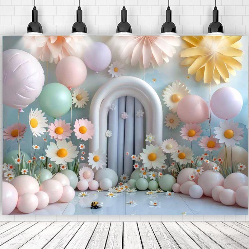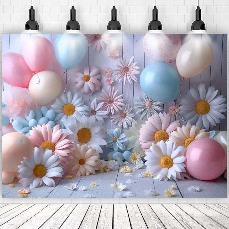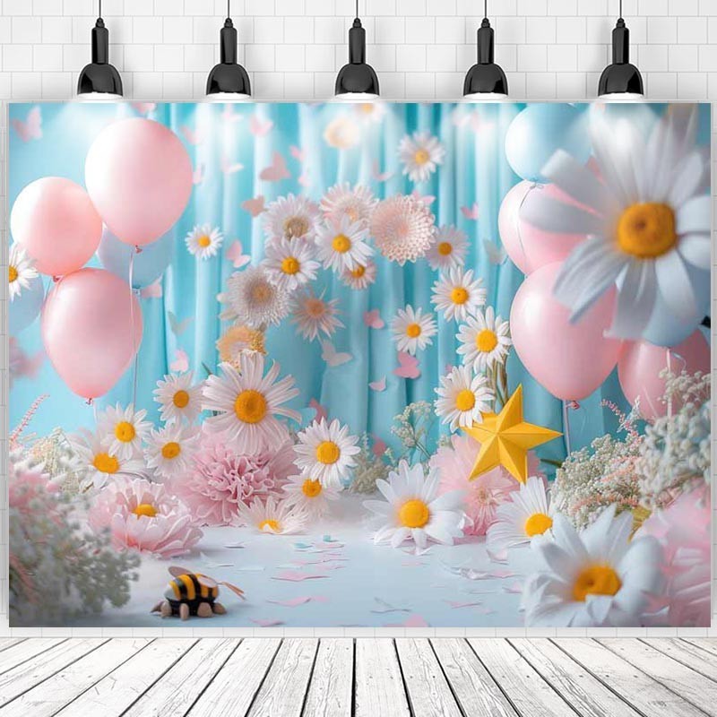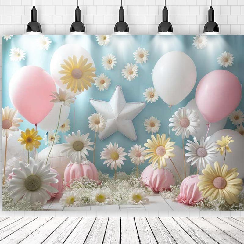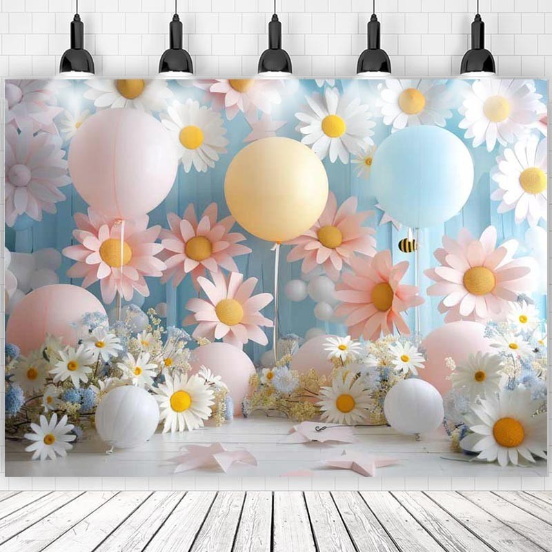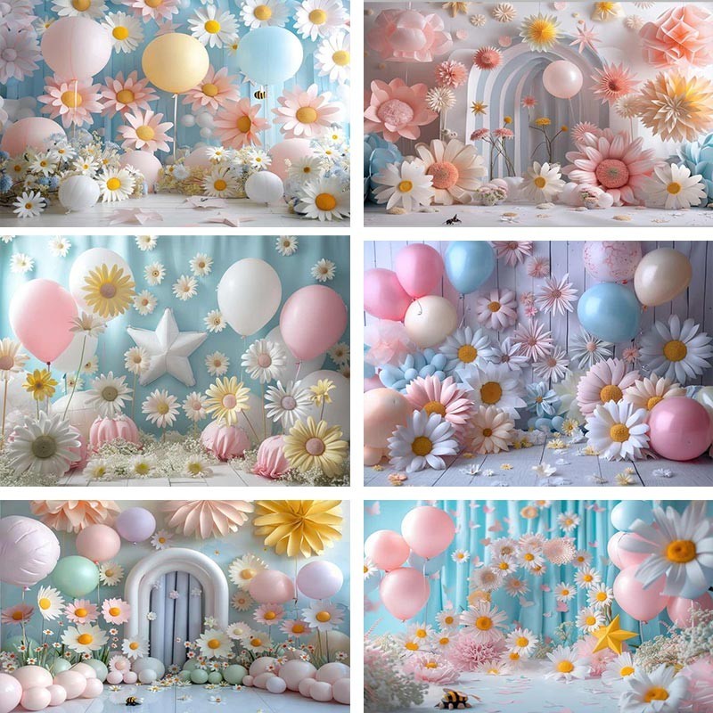 Daisy Backdrop For Baby Shower New Born Cake Smash Boy Girl Flowers Balloons Photographic Studio Birthday Background Photocall As the Pic Print