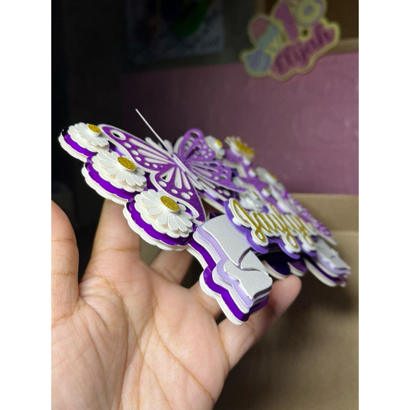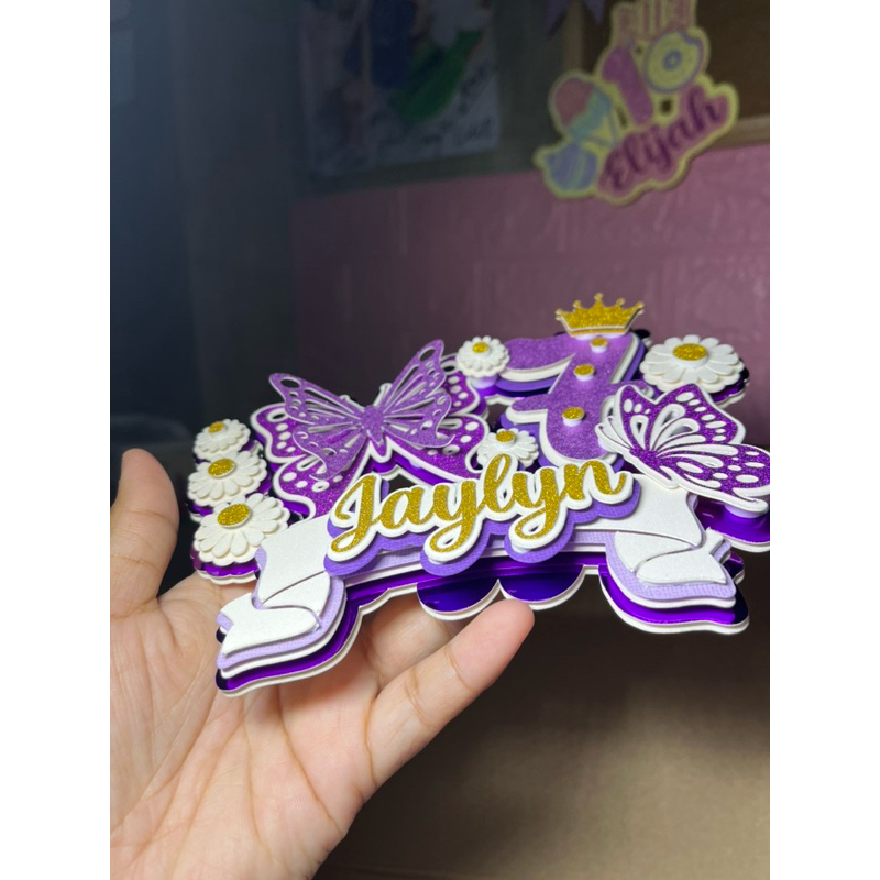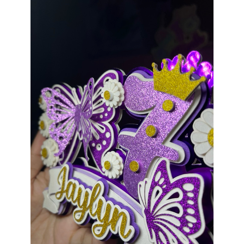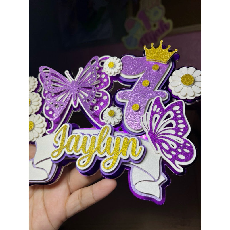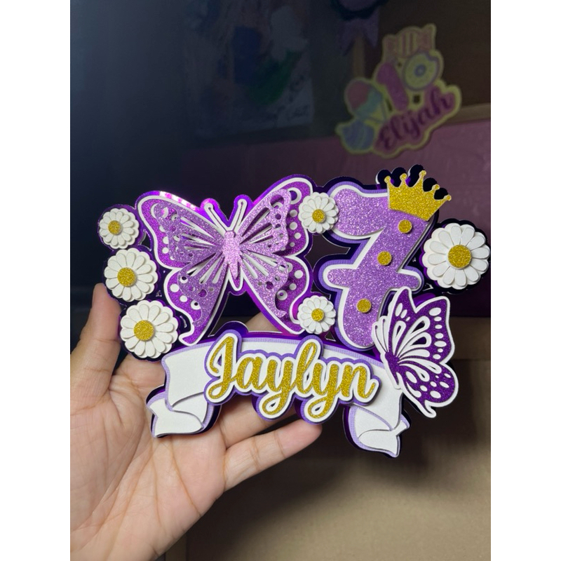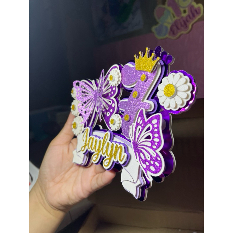 Daisy Butterfly Purple Cake Topper Layered