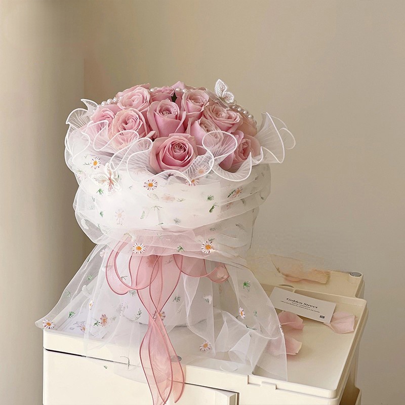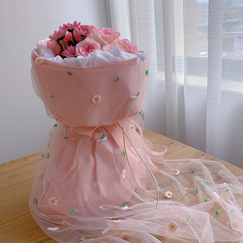 Daisy Net Yarn Flower Wrapping Paper Mesh Wrapper for Flower Arrangement Gift Packaging Bouquet Wrapping Net Florist Wrapper