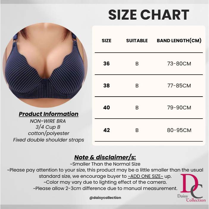 Daisycollection Cup B Quality Plus Size Bra Non wire Bra Size: 36B-42B (please add 1 size)