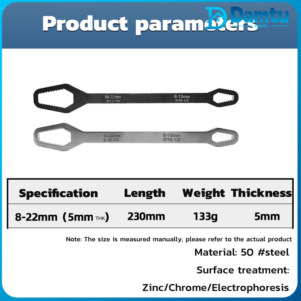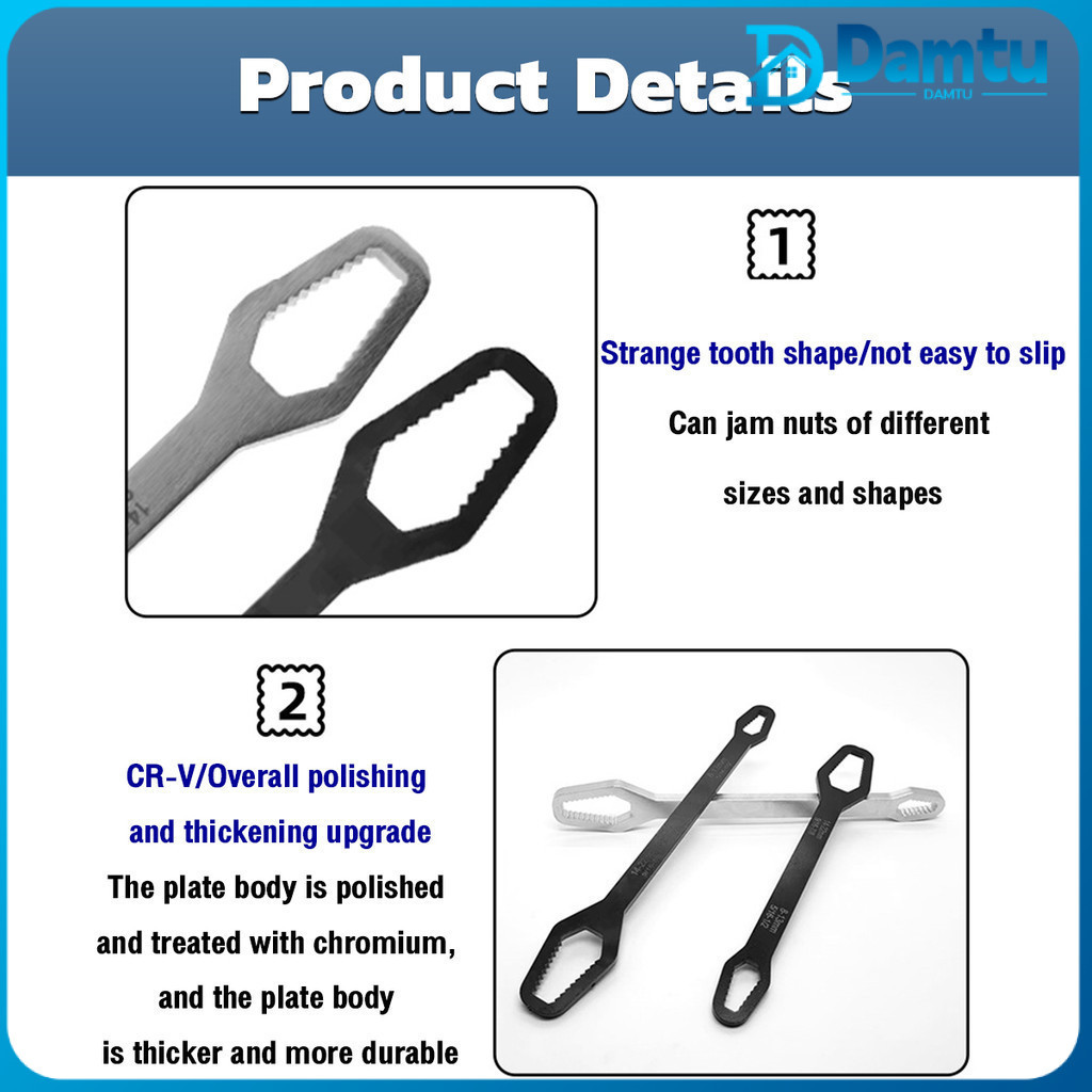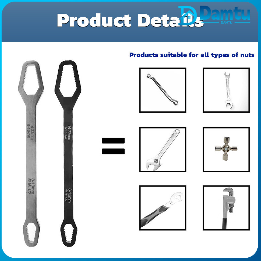Damtu Universal Torx Wrench Adjustable Ratchet Spanner Double Head Screws Key Nuts Wrench 8-22mm