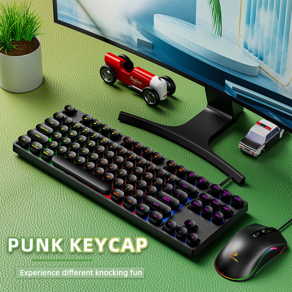 Dark Alien DK100 87 Keys Retro Punk Keyboard RGB LED Suspended Membrane Keyboard