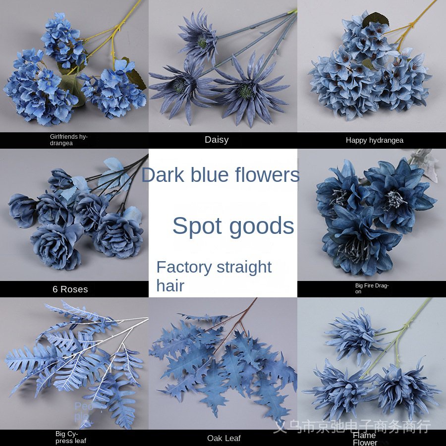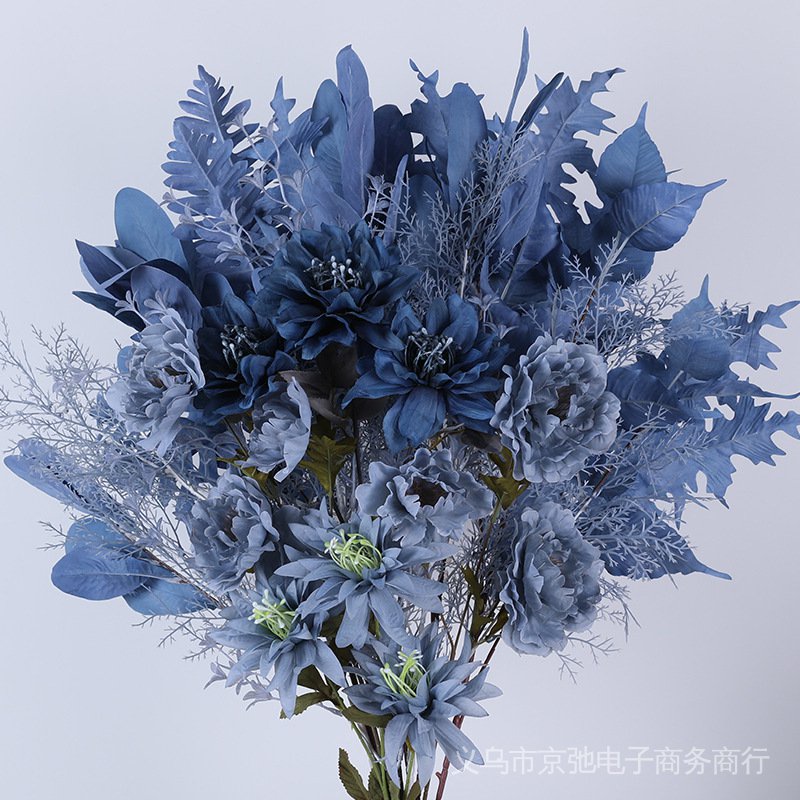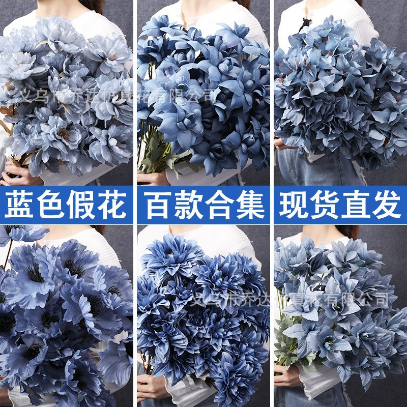 Dark Blue Artificial Flower Plastic Flowers Fog Arrangement Wedding Decoration Road Lead Fake Bouquet Haze Ground Handle