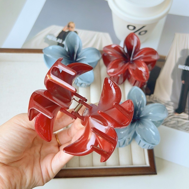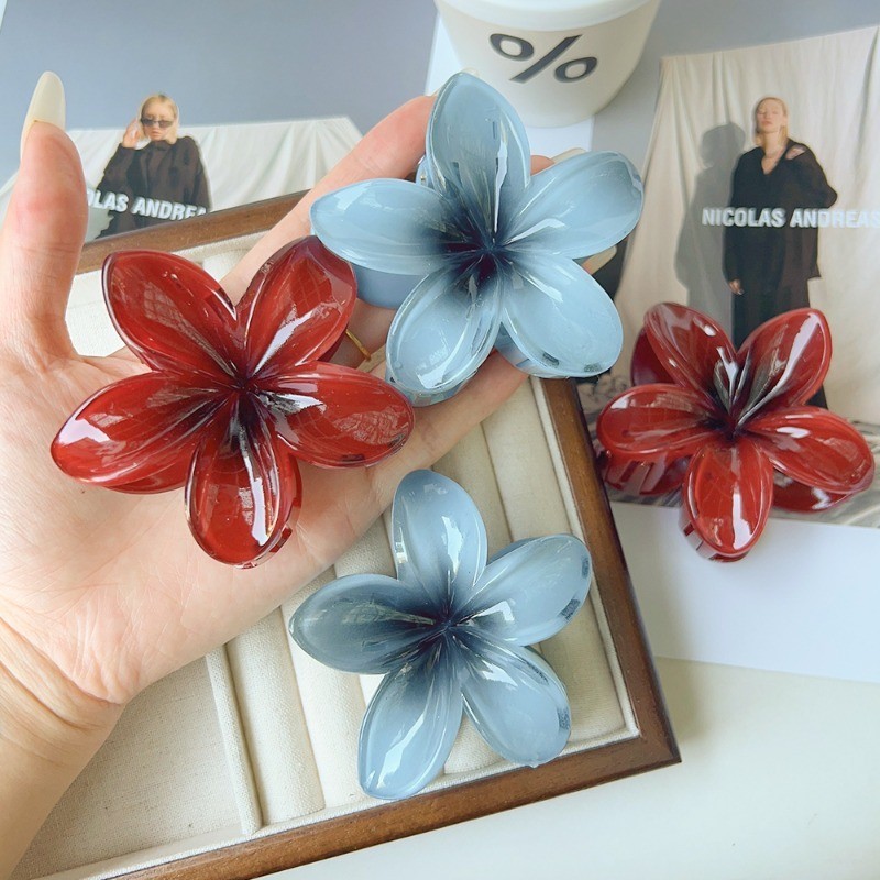 Dark Egg Flower Hair Claw - Dress Up Hair Accessories - Large Grab Clip - Fashion, Elegant, Exquisite - Plumeria Flowers Hair Clamp - For Girls Holiday, Party Headdress