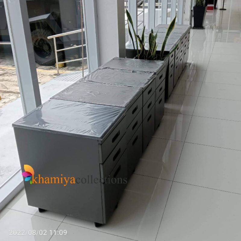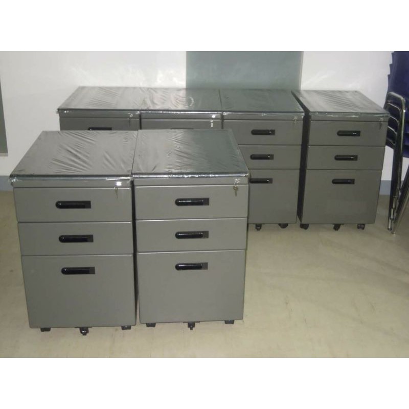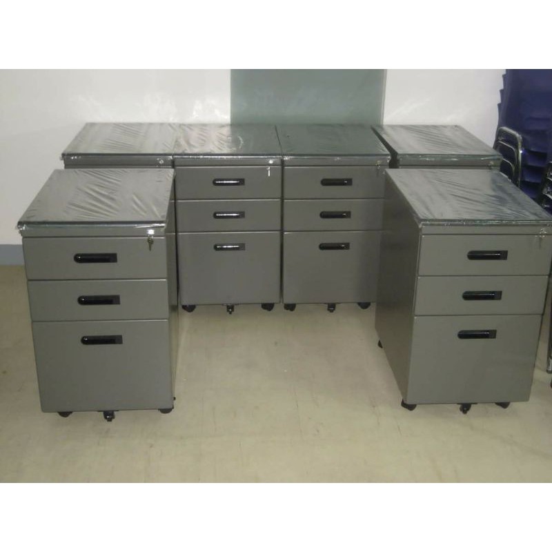 Dark Gray Mobile Pedestal Movable Cabinet, 3 Drawer Metal Storage, Steel Cabinet Under Desk