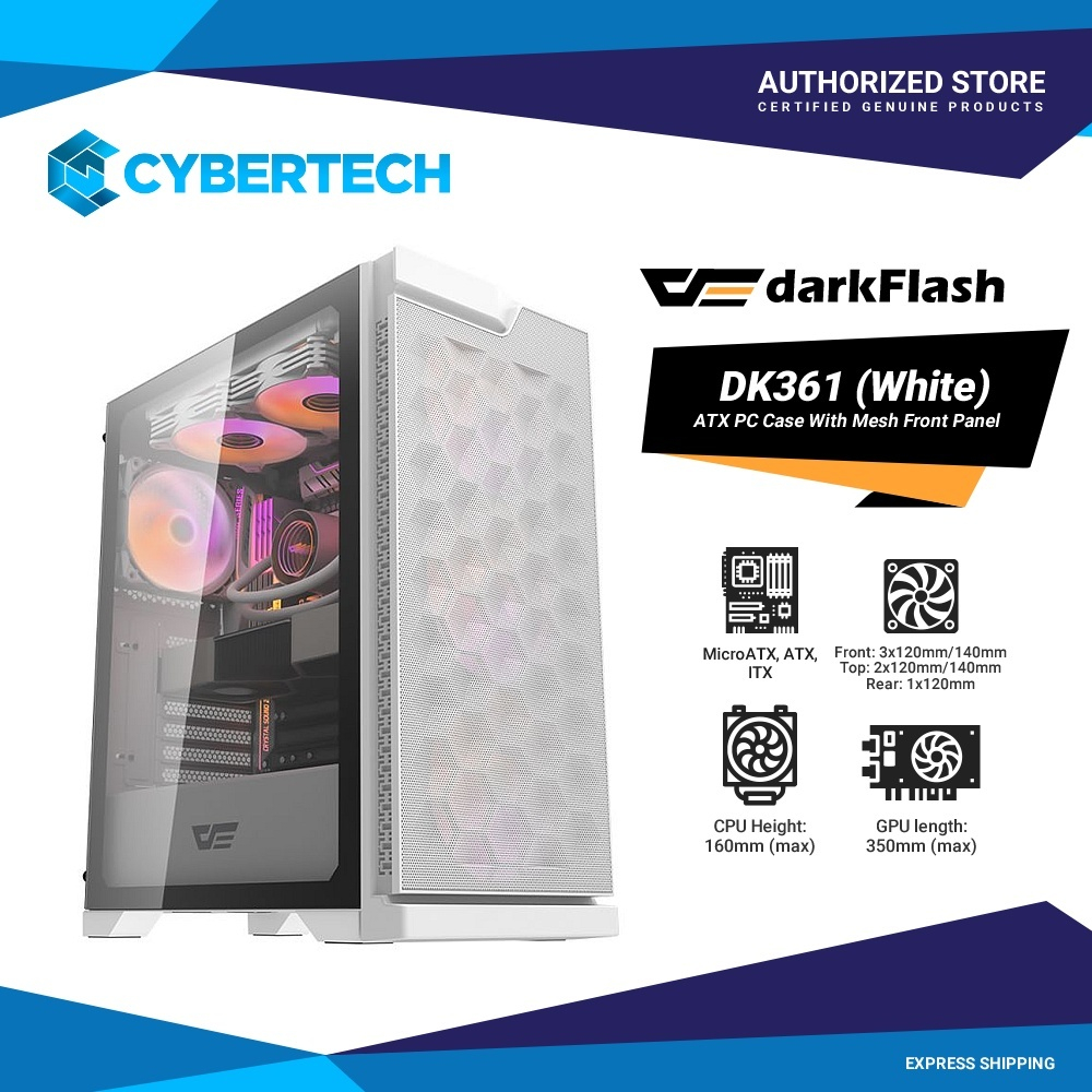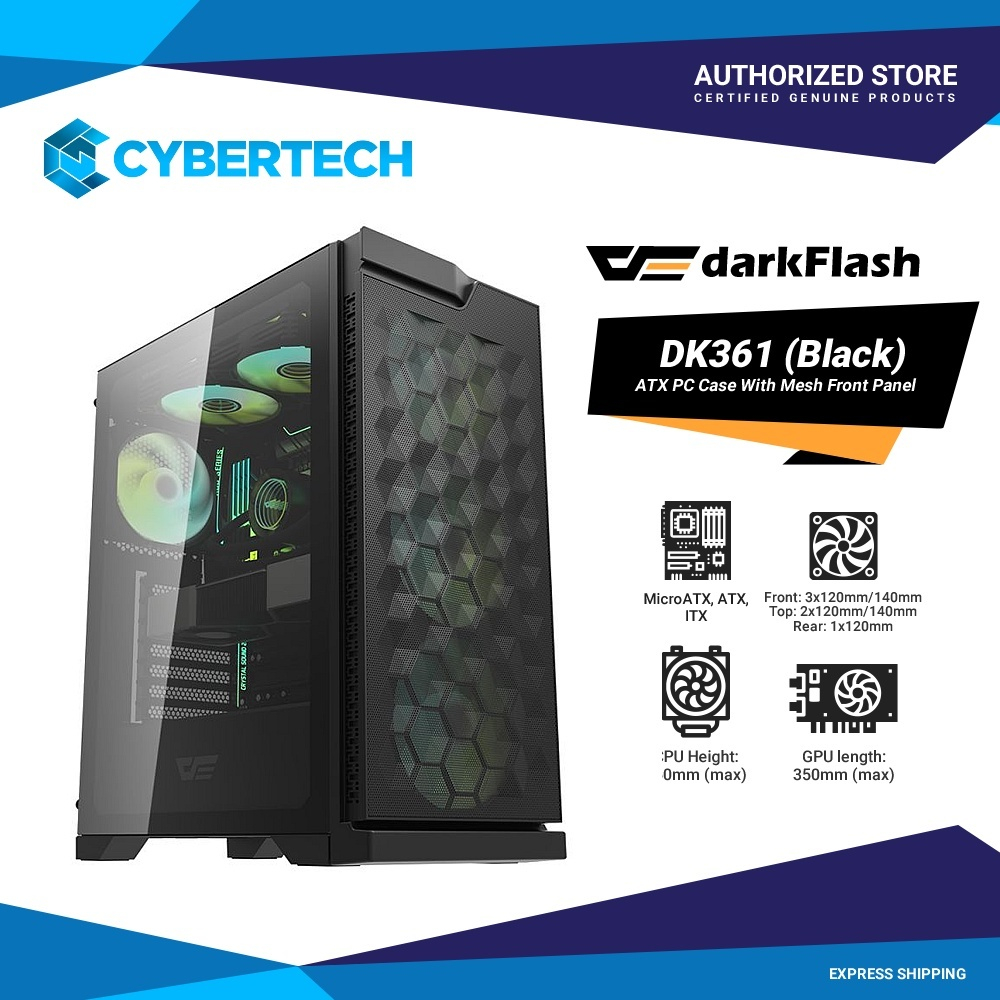 DarkFlash DK361 ATX PC Case With Mesh Front Panel and 4 x ARGB Fans