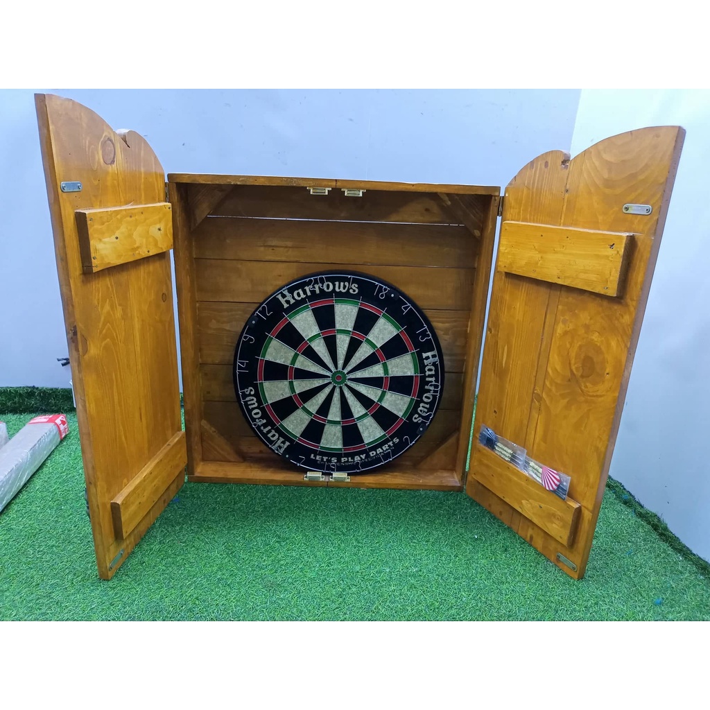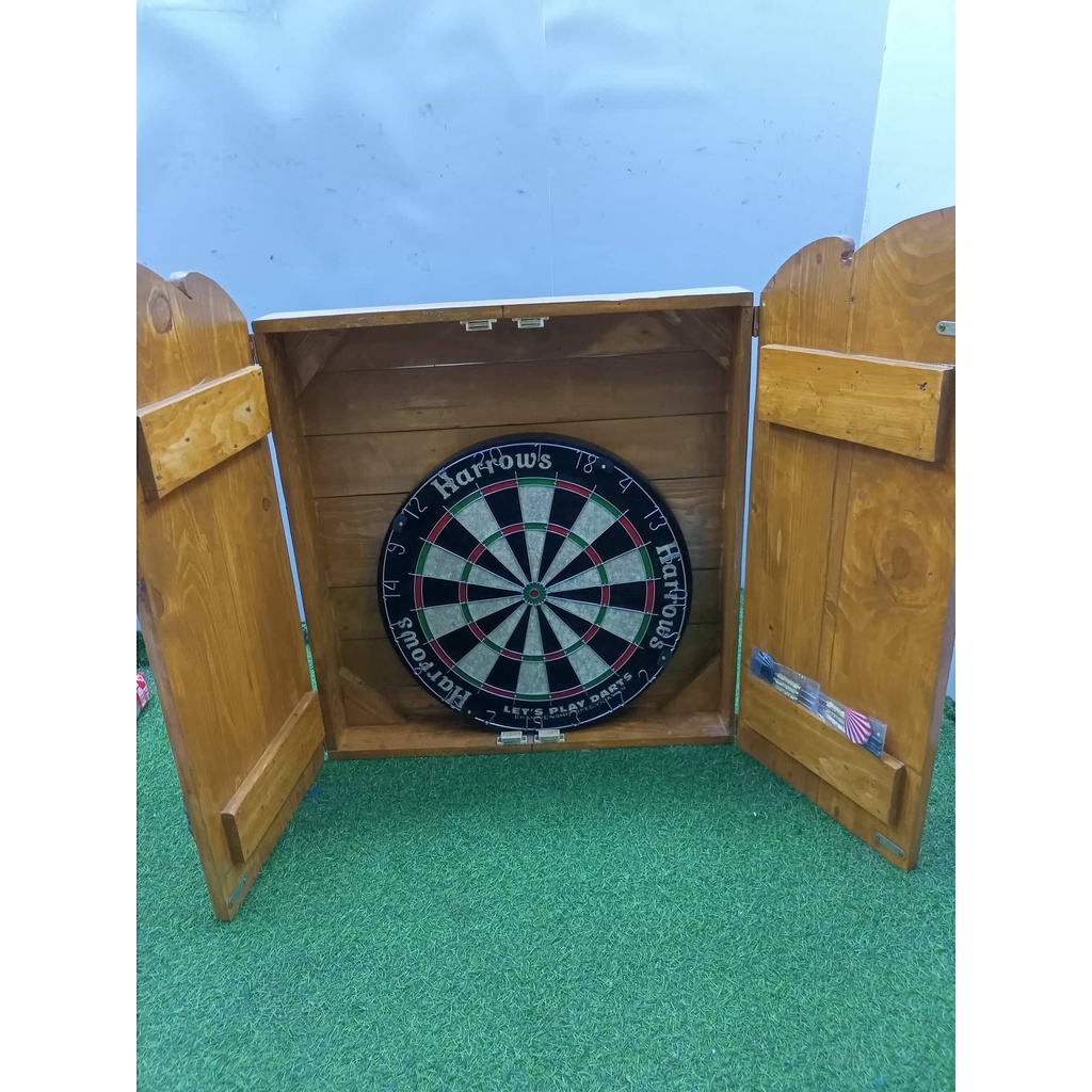 Dart Board Cabinet Set with Dartboard Harrows, Pin and Scoreboard / Dartboard Accessories