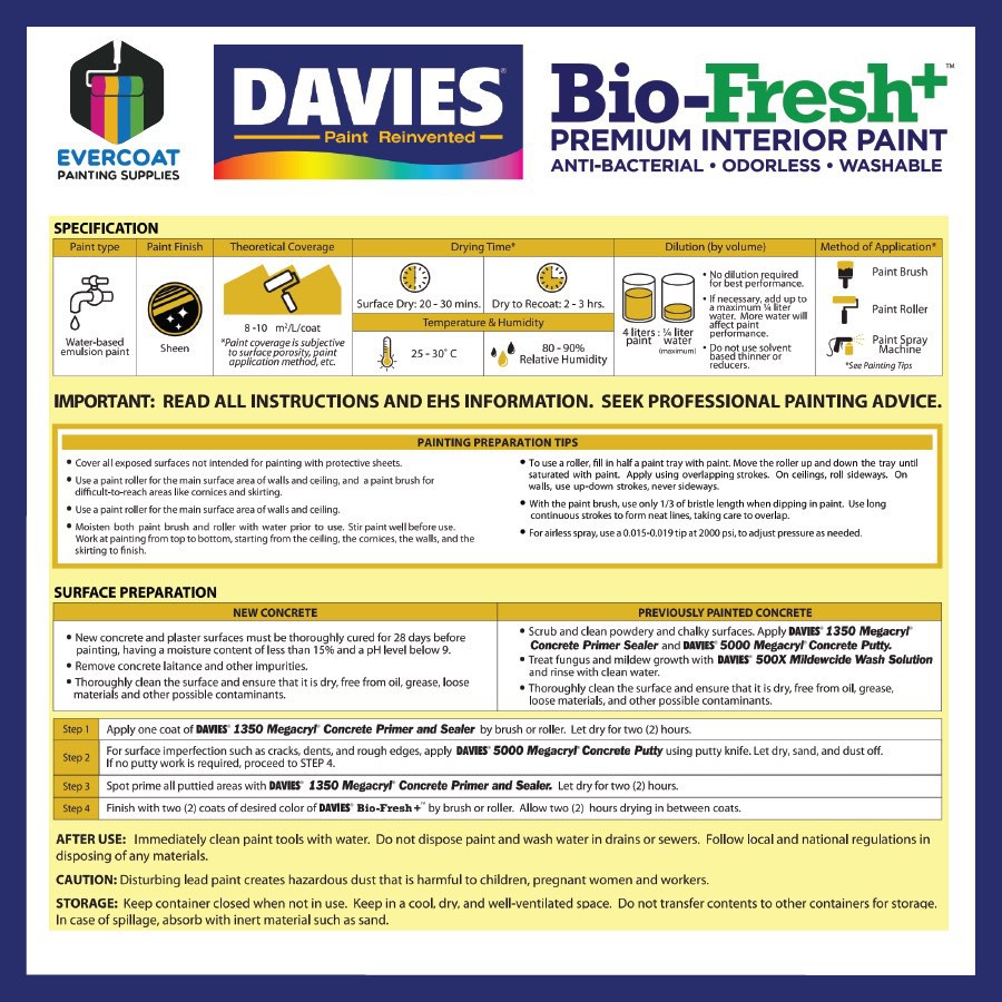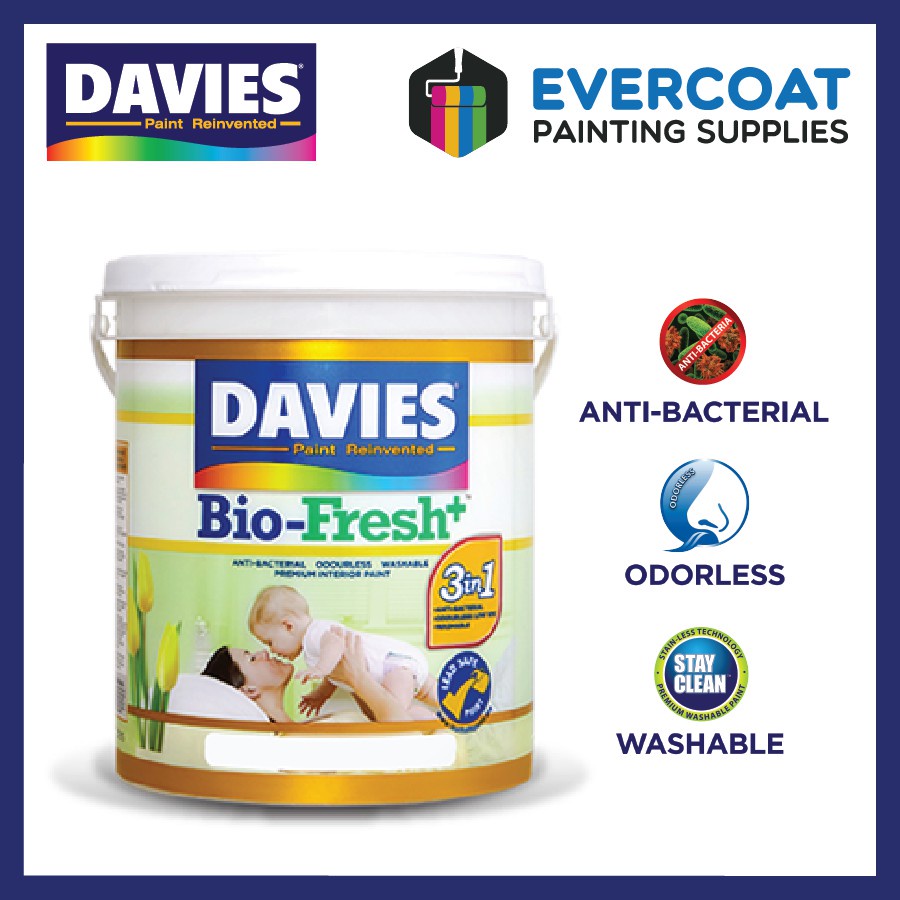 Davies Biofresh Antibacterial Paint, Odorless, Washable, Low VOC, Water Based 4L MatteSemiglossSatin