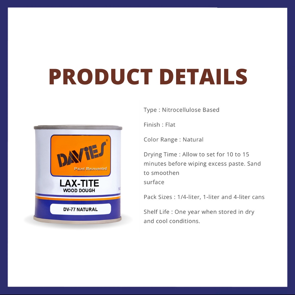 Davies Lax-tite Lacquer Wood Dough (Wood Putty) 1/4L and Putty Knife (RH) 1",2",3"