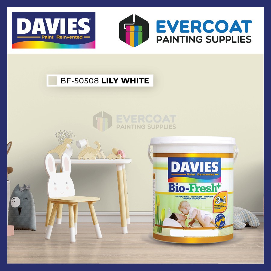 Davies Biofresh Antibacterial Paint, Odorless, Washable, Low VOC, Water Based 4L Whites & Neutrals