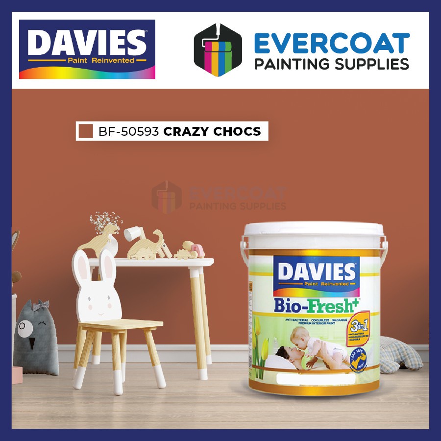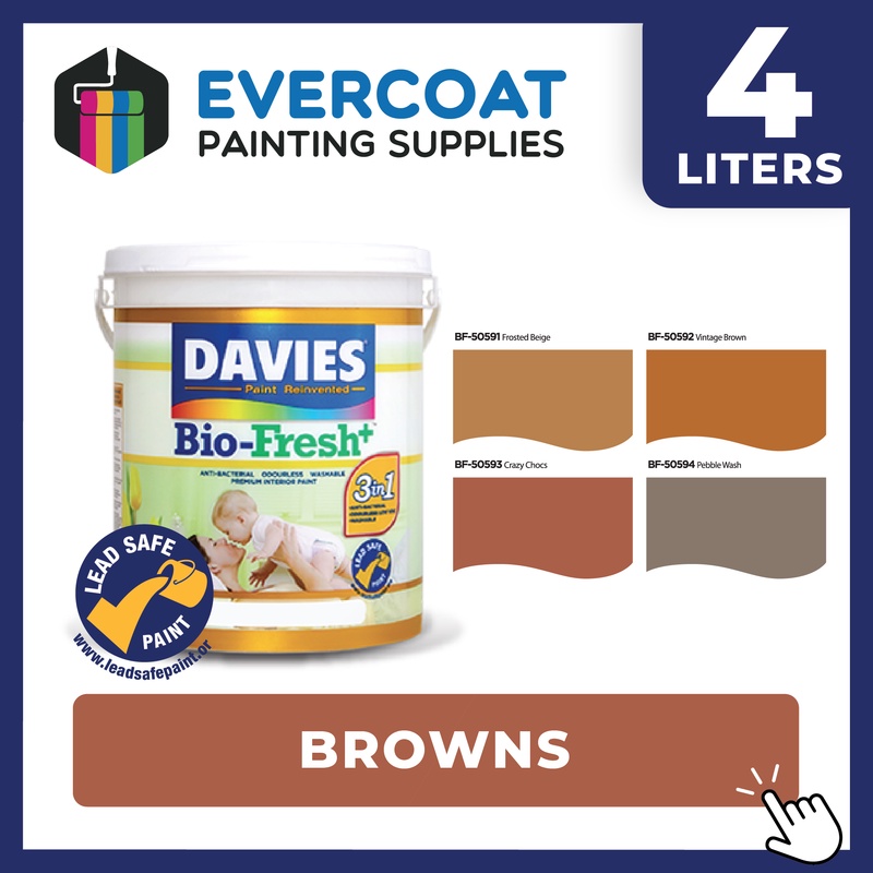 Davies Biofresh Antibacterial Paint, Odorless, Washable, Low VOC, Water Based 4L Browns