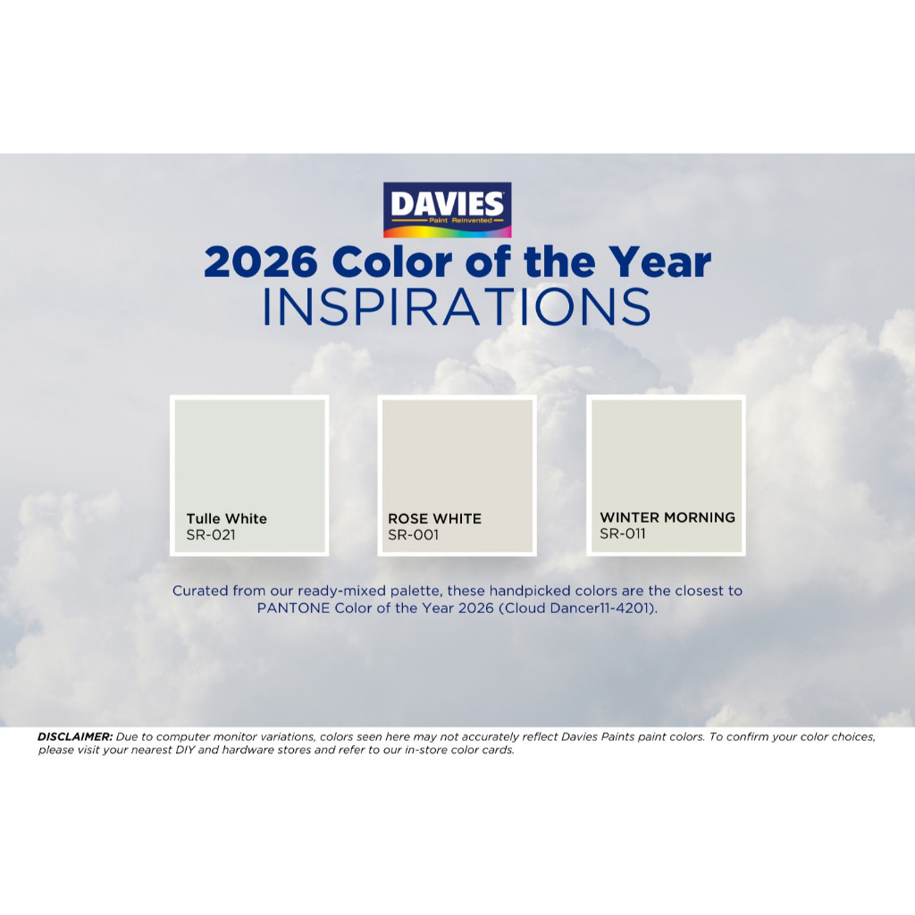 Davies Sun & Rain Elastomeric Paint, 100% Acrylic, 84 Colors, Odorless, Water Based 1L White&Neutral