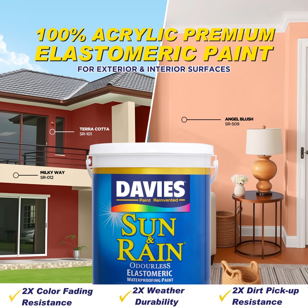 Davies Sun and Rain 4 Liters (Gallon) Elastomeric Paint 100% Acrylic Waterproofing Primer-Less PART1