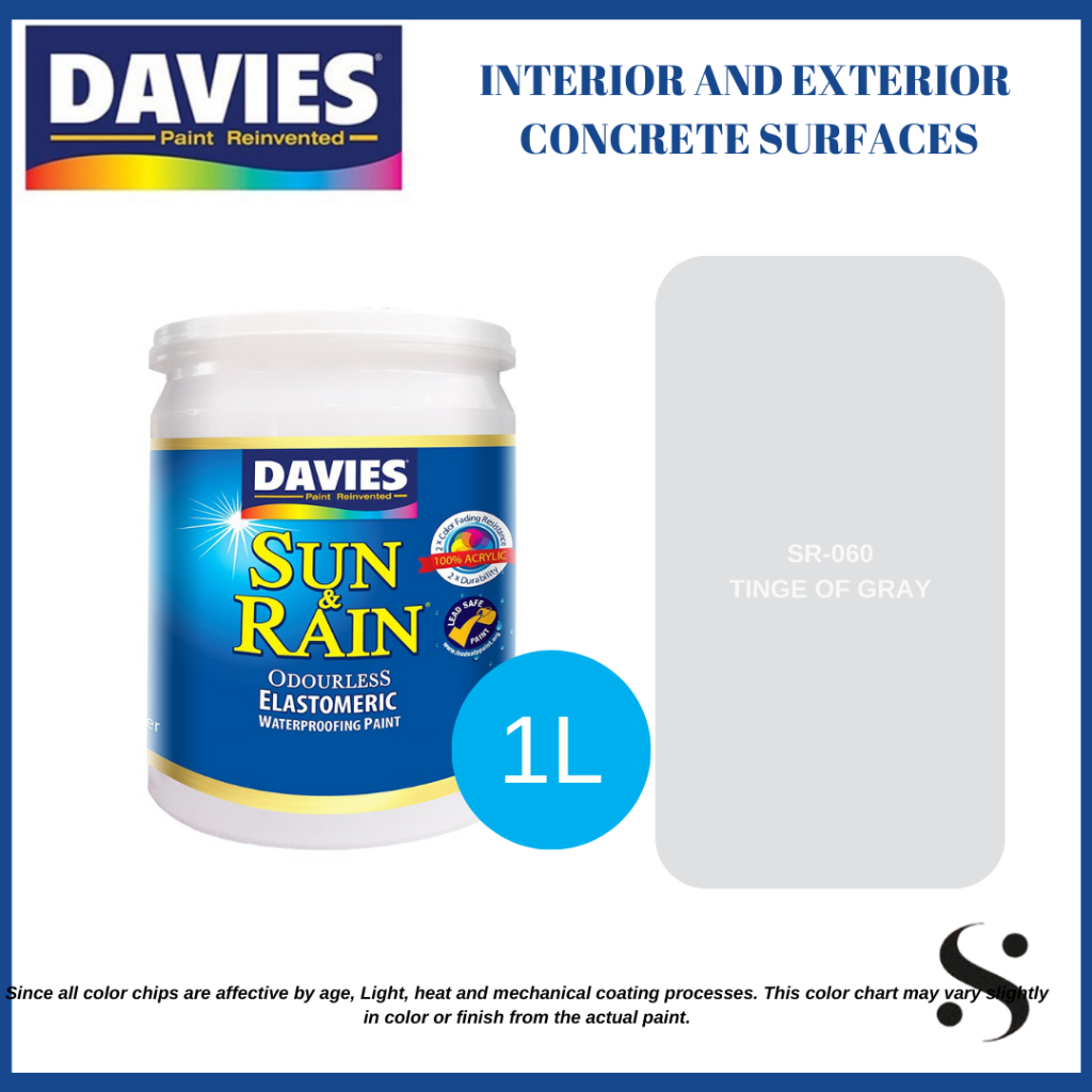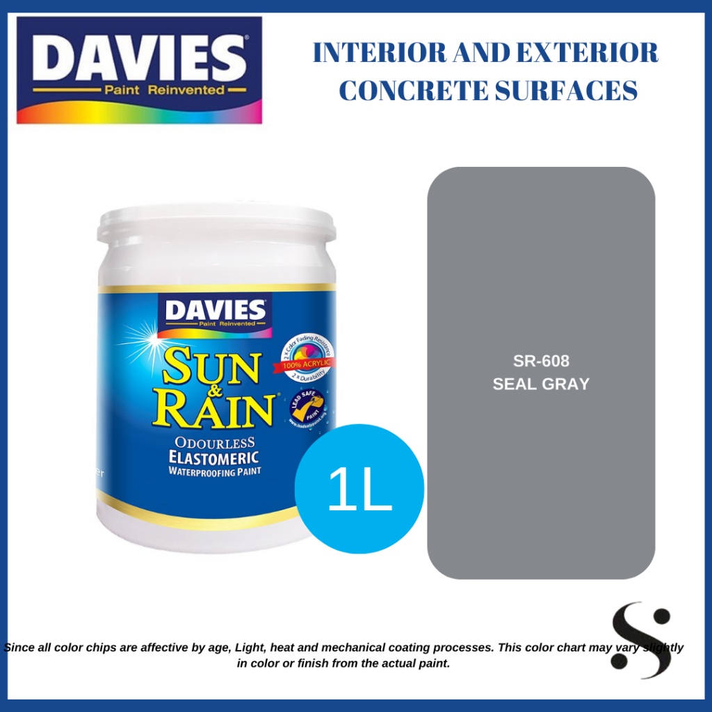 Davies Sun and Rain Elastomeric Grays and Blacks For interior and exterior concrete surfaces 1Liter
