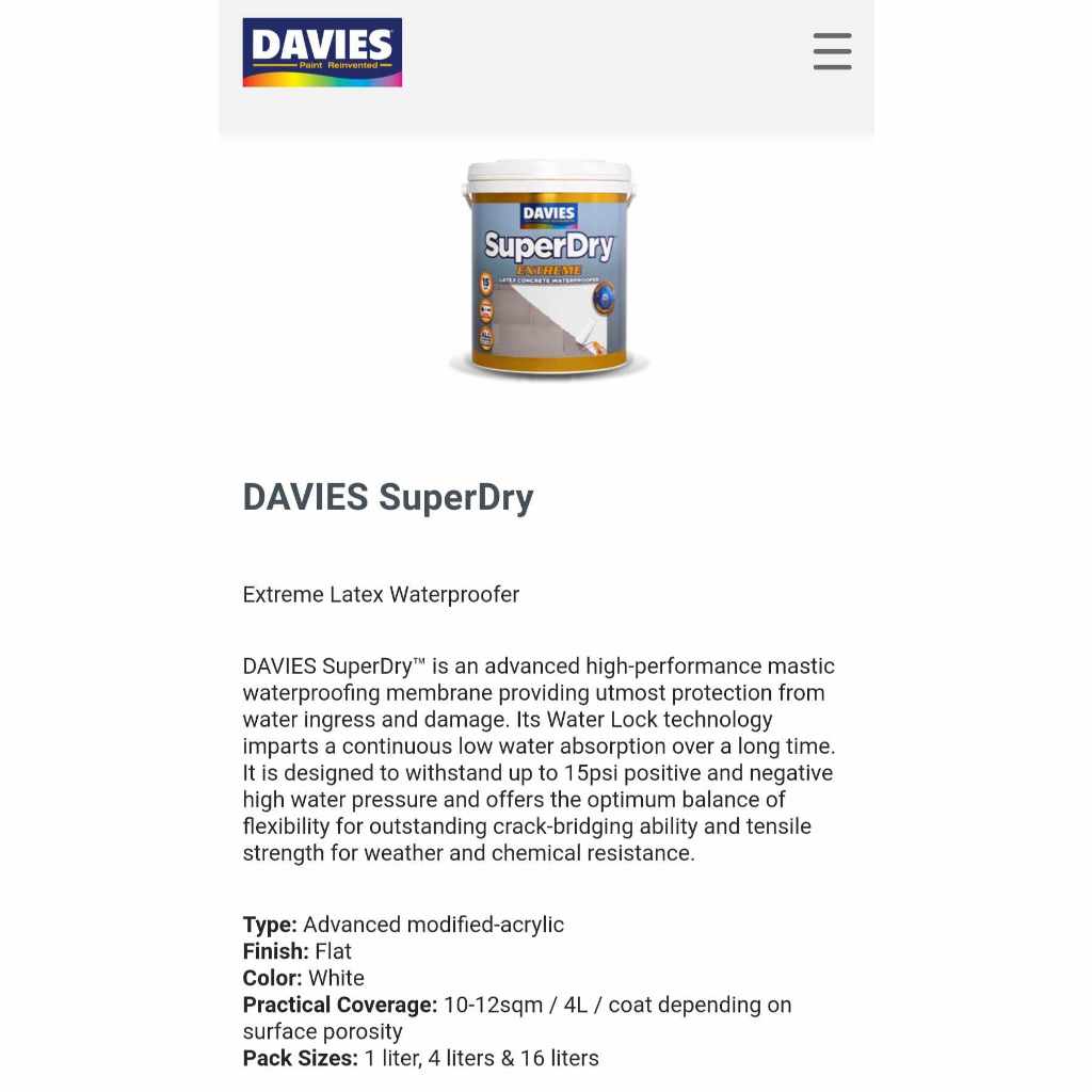 Davies MONDO Superdry Extreme Waterproofing Primer - 1L (1 liter/quart) | Paint Republic PH