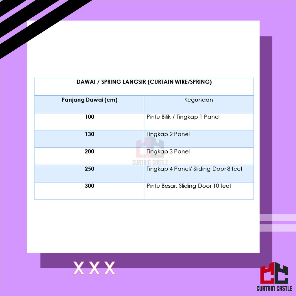 Dawai/ Spring Langsir Putih Percuma Skru (White Curtain Wire/ Spring Free Screw)