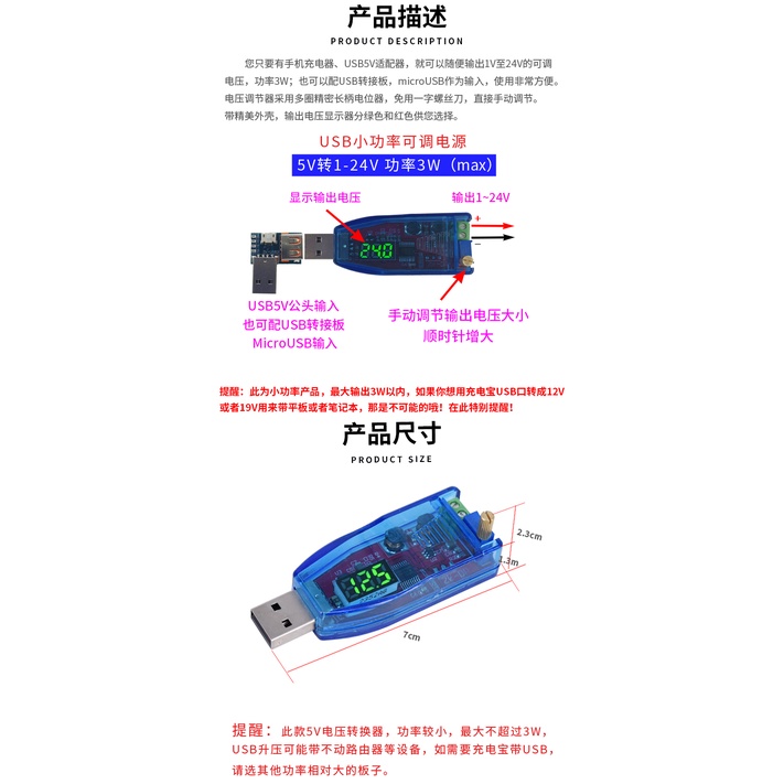 Dc-dc USB Adjustable Lifting Buck Power Supply Voltage Regulator Module 5V to 1.8V 3.3V 5V 9V 12V 24V