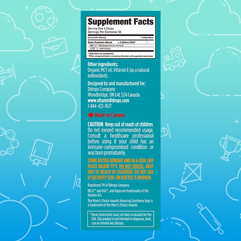 Ddrops Kids Liquid Bifidobacterium BB-12 + LGG Probiotics (150 Drops/5ml) | Gut Health & Immunity Support