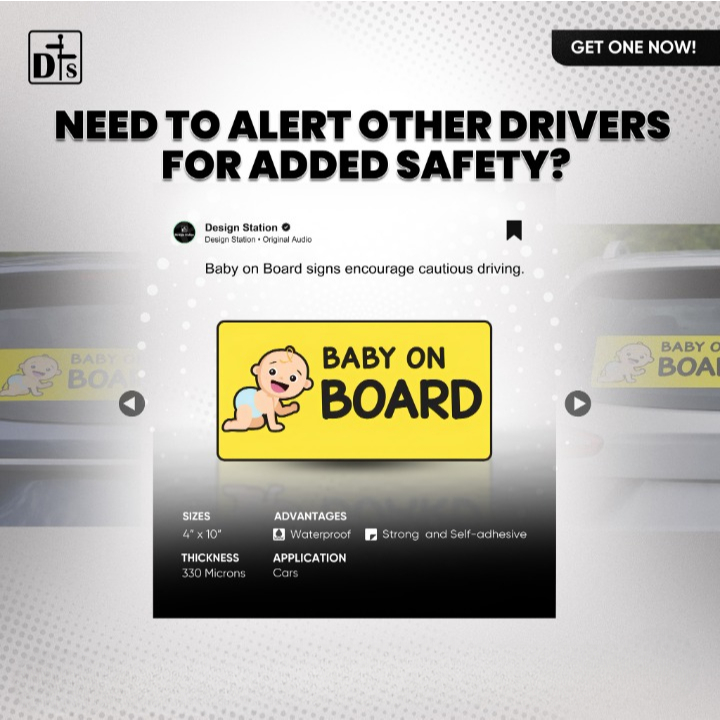 De-Sign Baby on Board signage stickers for car 4x10" Inches, Waterproof Signage Sticker.